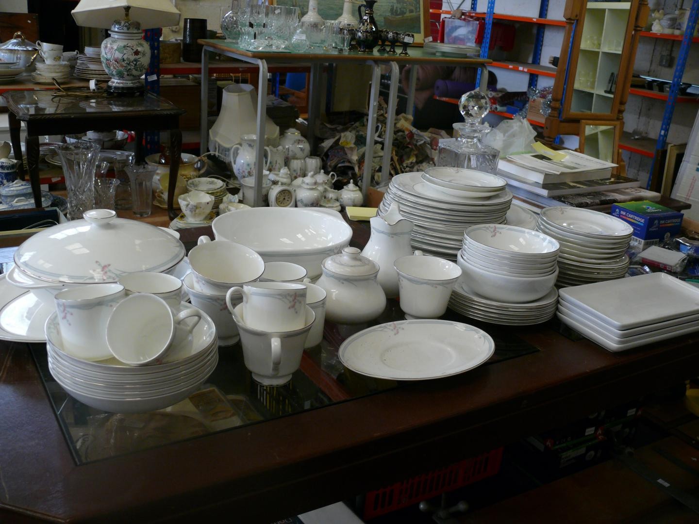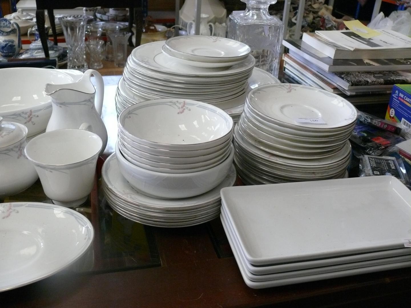 A very large dinner service by Royal Doulton in the 'Carnation' pattern to include dinner plates, salad plates, tea plates, cups & saucers, milk jug, sugar bowl, tureen, platters etc