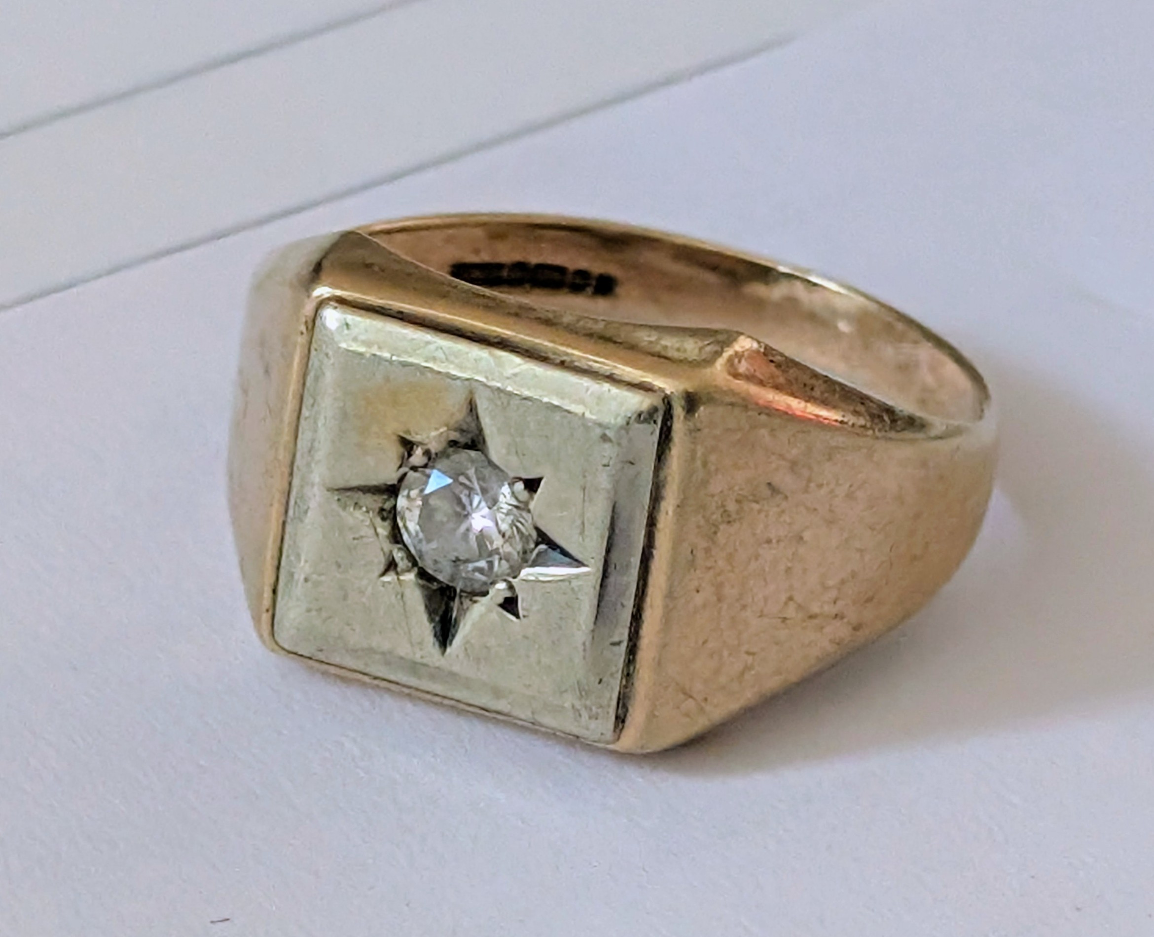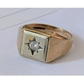 Vintage 9ct Gold Gypsy Set Single Diamond Signet Ring Size R - 5.4 gm