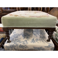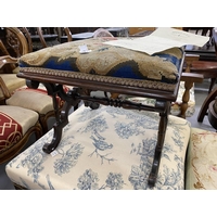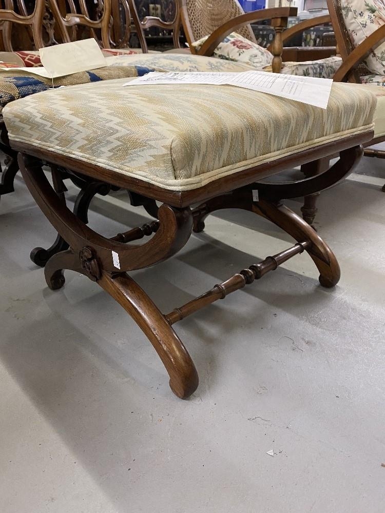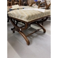 Mid 19th cent. Rosewood cross stretcher upholstered footstool with applied rose motifs.