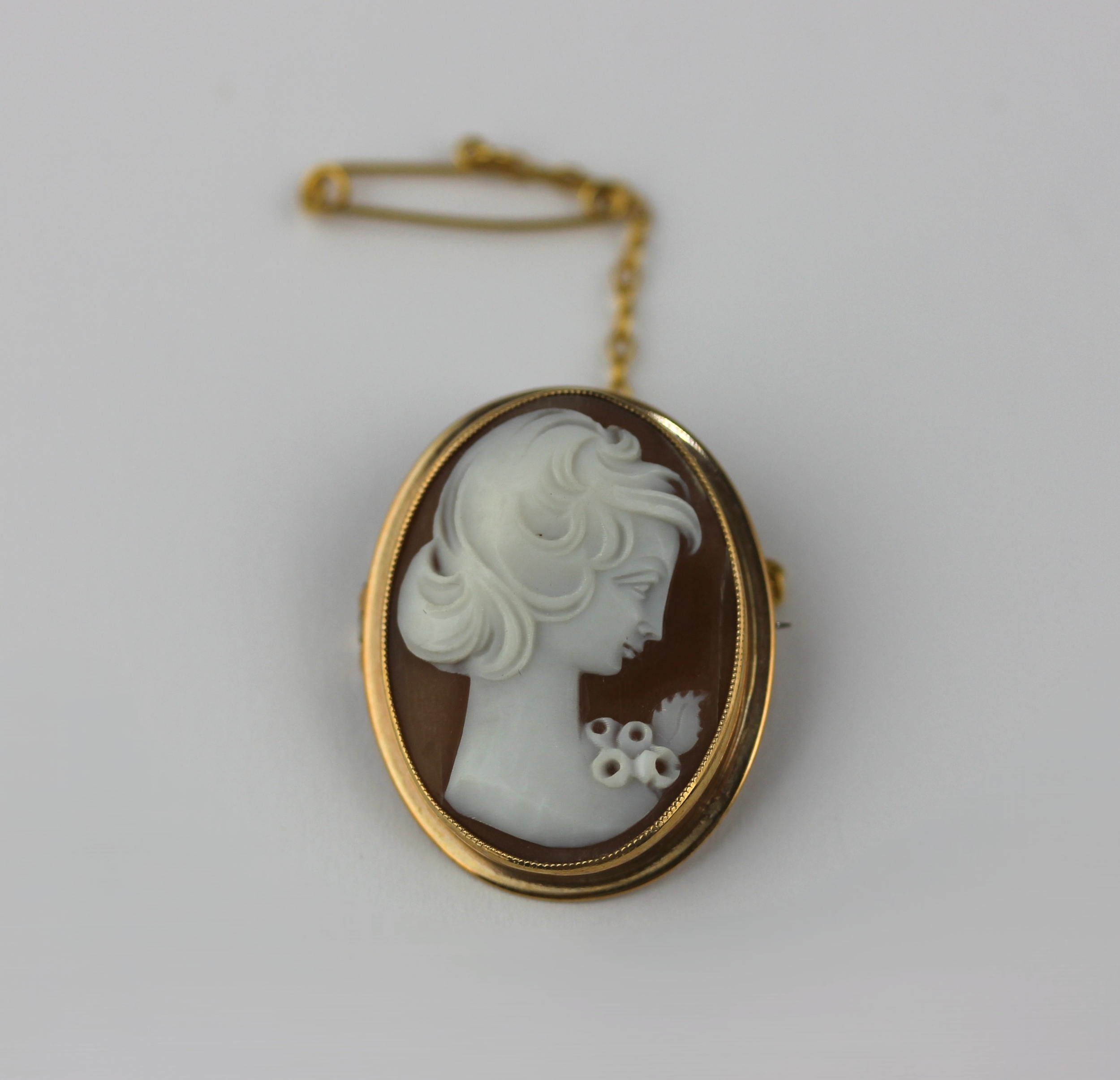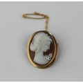 A 9ct gold mounted oval shell cameo brooch carved as the portrait of a girl, Birmingham 1968 gross weight 4g