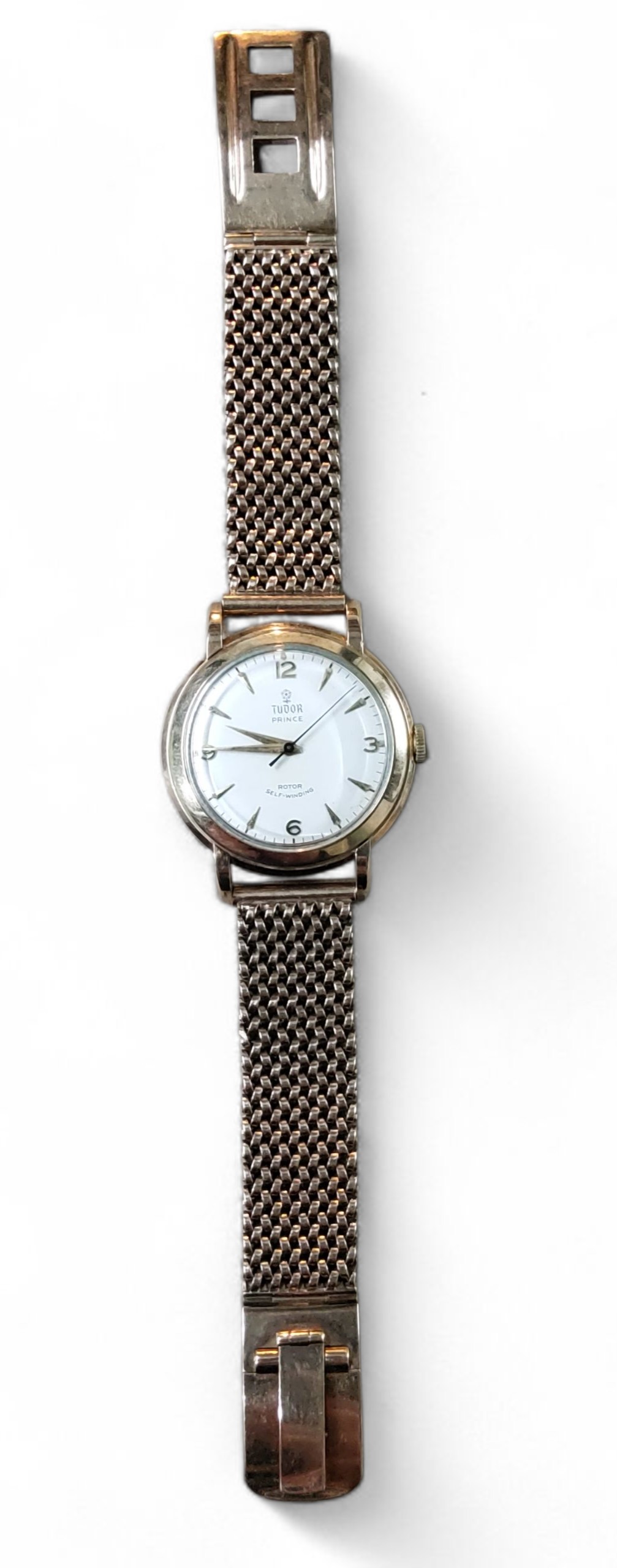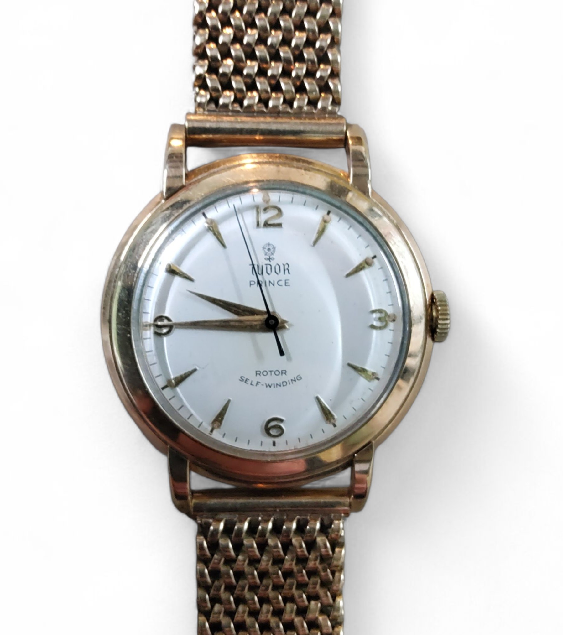 A vintage 9ct gold Tudor Prince gentleman's wristwatch, automatic movement, cream dial, Arabic numerals and baton markers, a 9ct gold Chaincraft bracelet, JG&S, Birmingham, 1958, w/o, 35mm, 60.8g gross