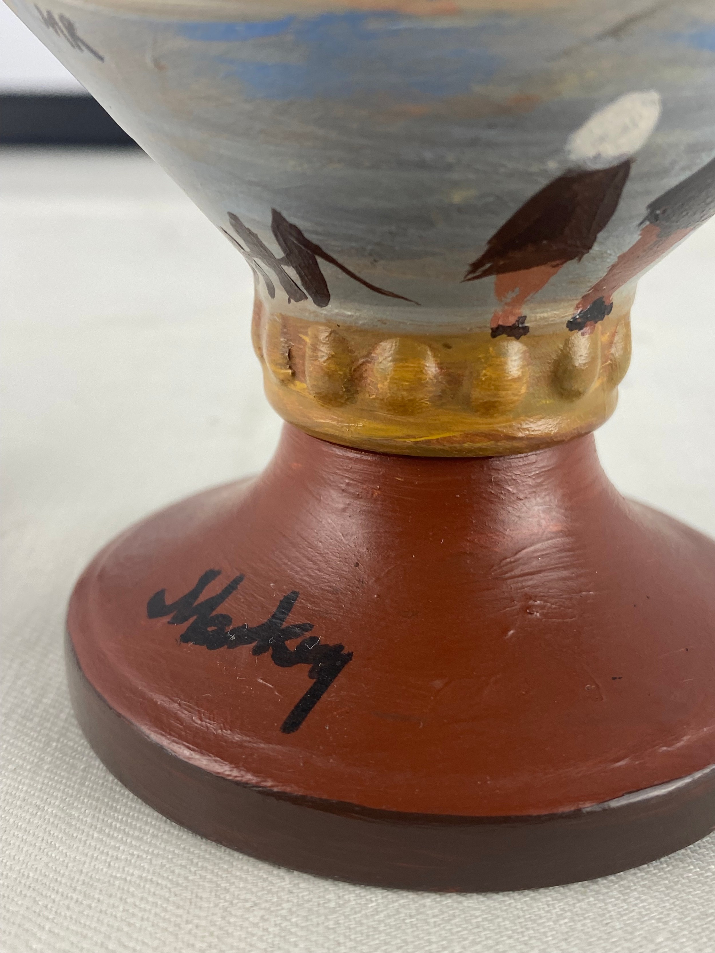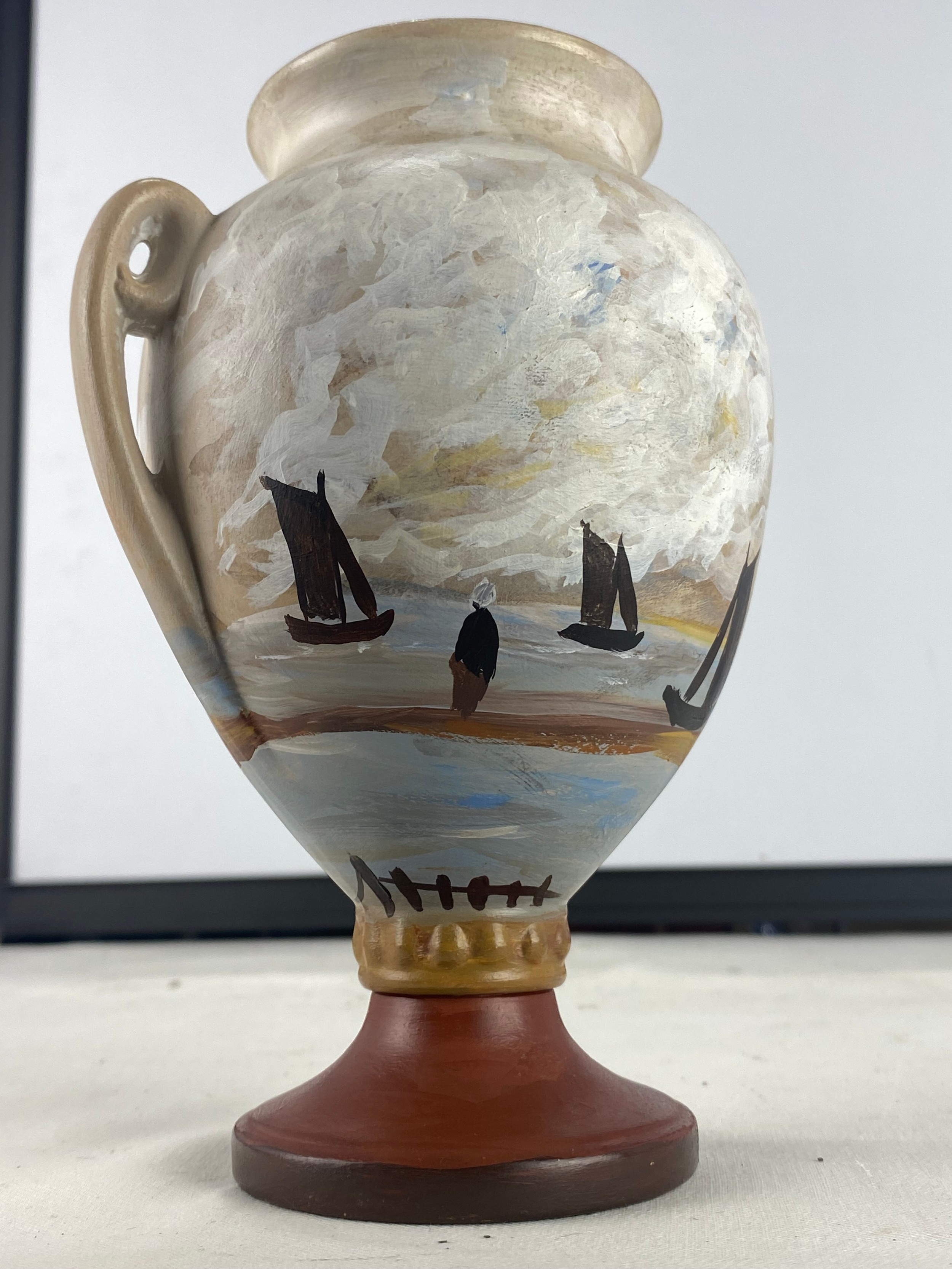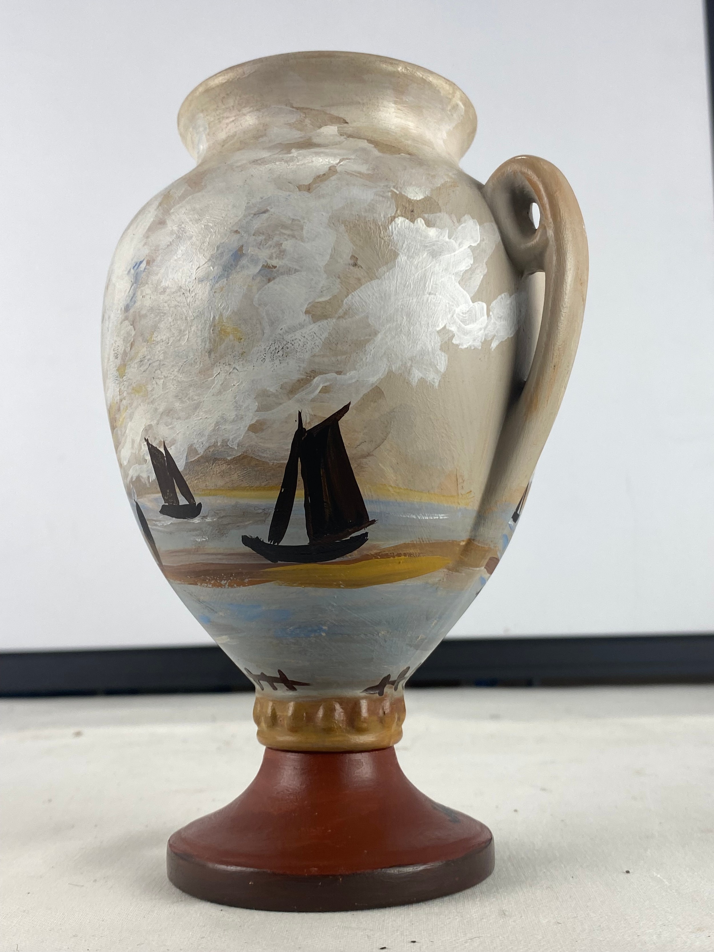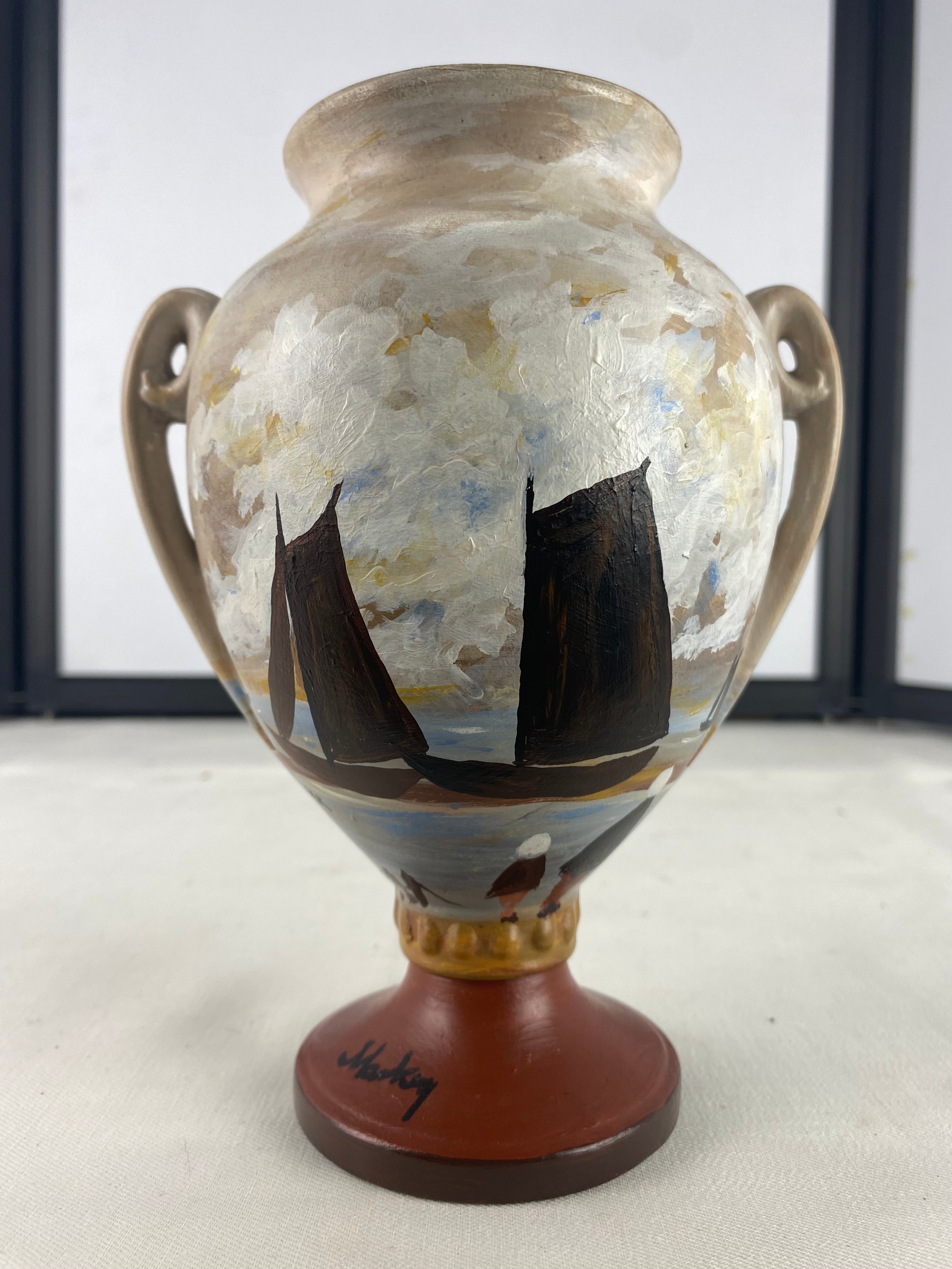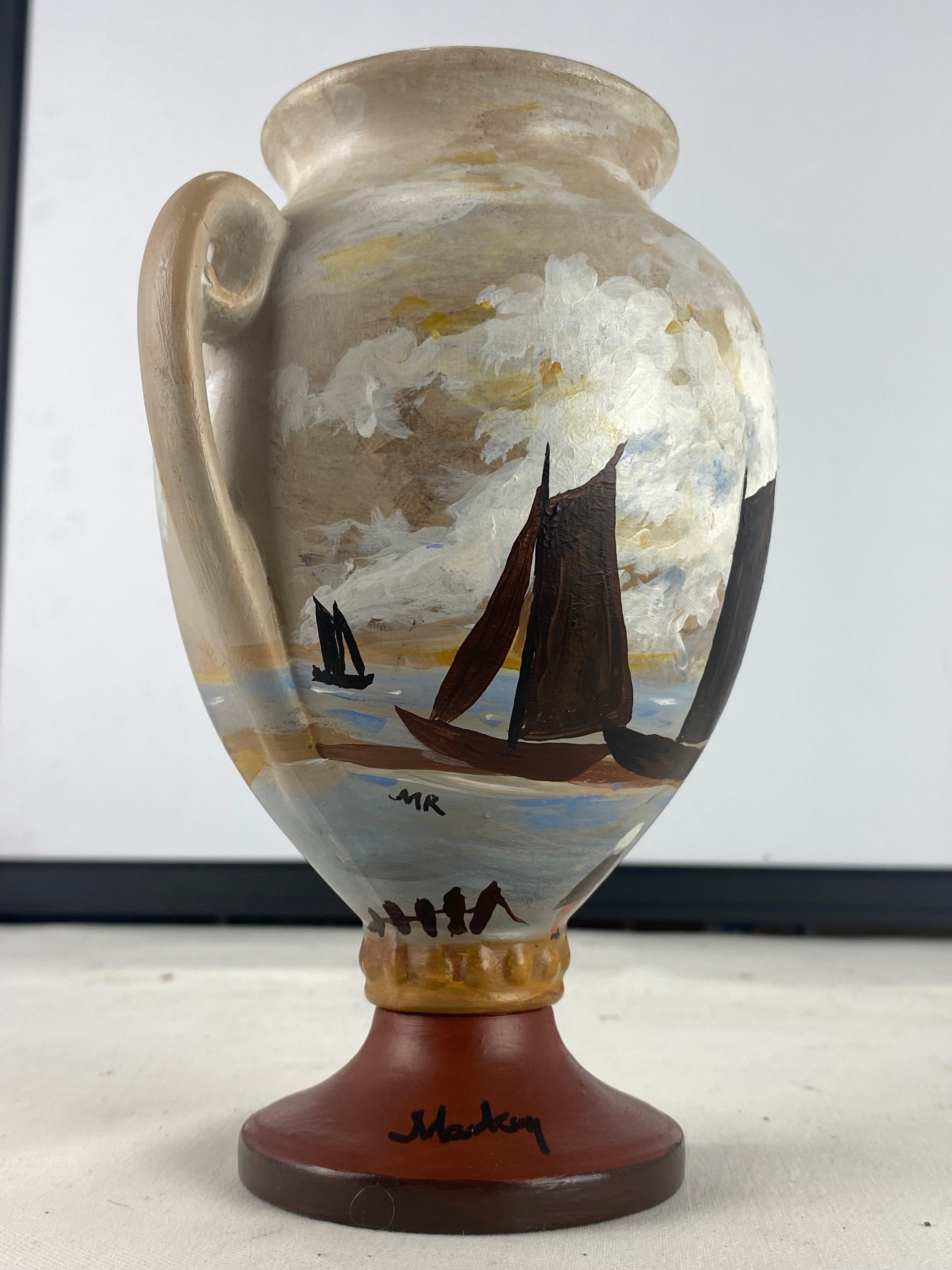 A stunning 'Markey' hand painted vase of sailing ships.