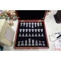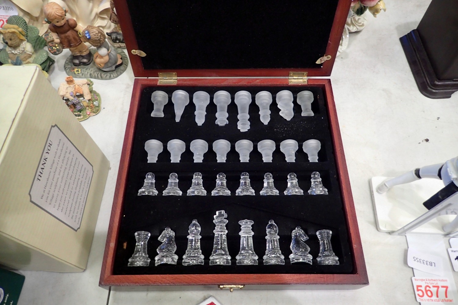Glass chess board with full set of chess pieces within. Not available for in-house P&P
