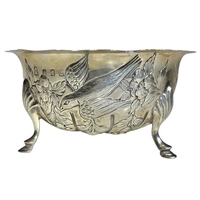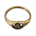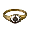 Having central round brilliant cut diamond (approx. 2.5mm) flush set, suspended in a circular open worked mount.