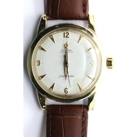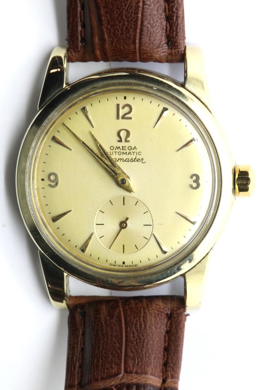 Gents Omega 1950s automatic Seamaster, subsidiary second dial at 6 o'clock, gold filled, recent full service, gold dial, in original box. P&P Group 1 (£14+VAT for the first lot and £1+VAT for subsequent lots)
