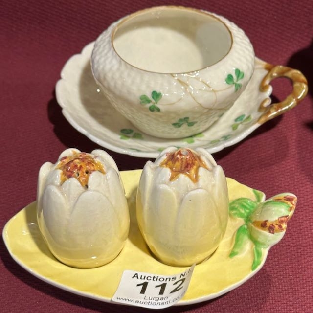 Belleek Shamrock Dish & Plate + Royal Winton Cruet Set