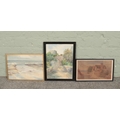 Three framed watercolours, landscape scenes, one title Scaleby Castle, dated 1912.
