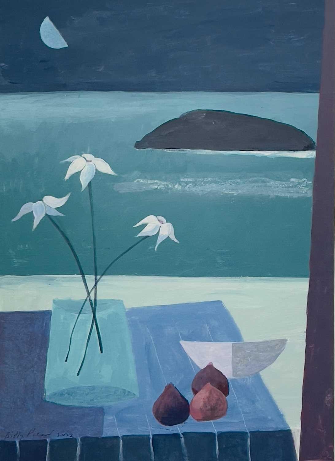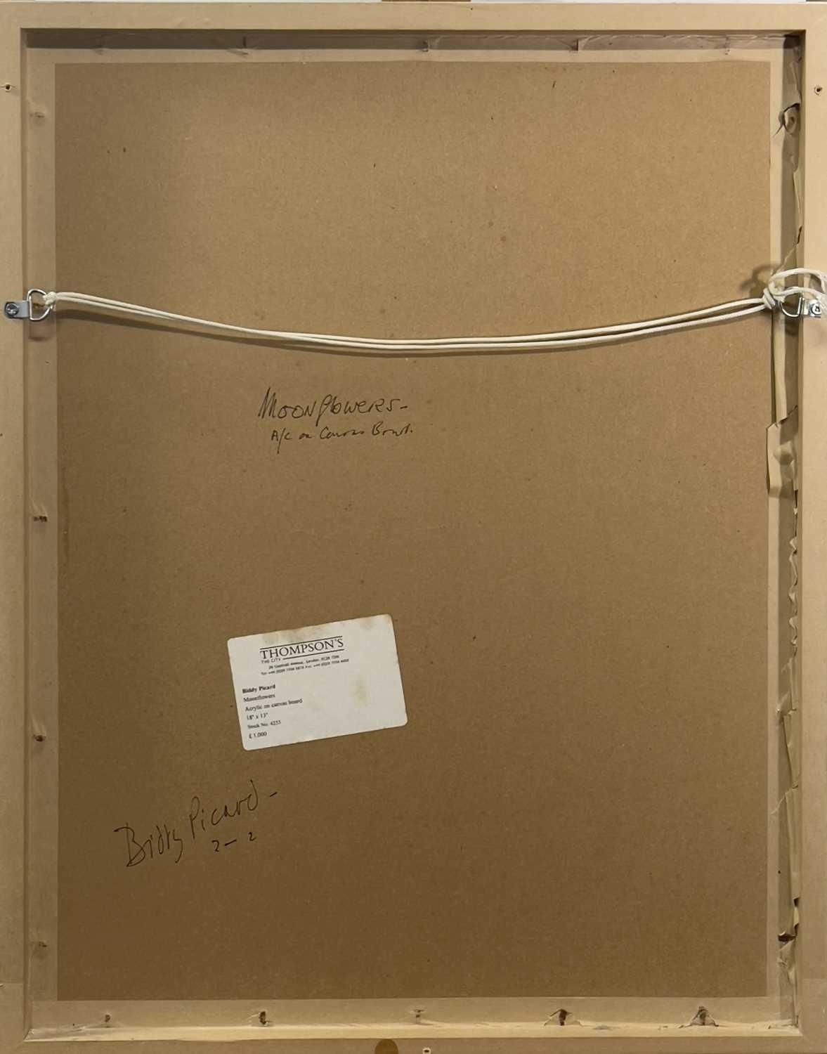 Biddy PICARD (1922-2019) Moonflowers Acrylic on canvas board Signed and dated 2002 Further signed and inscribed to verso 46 x 33cm