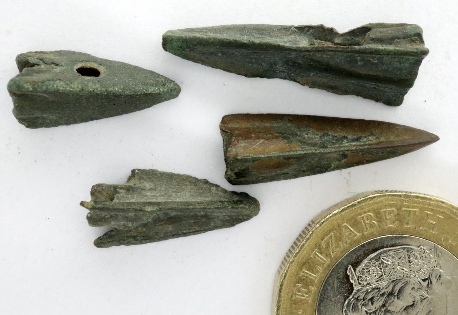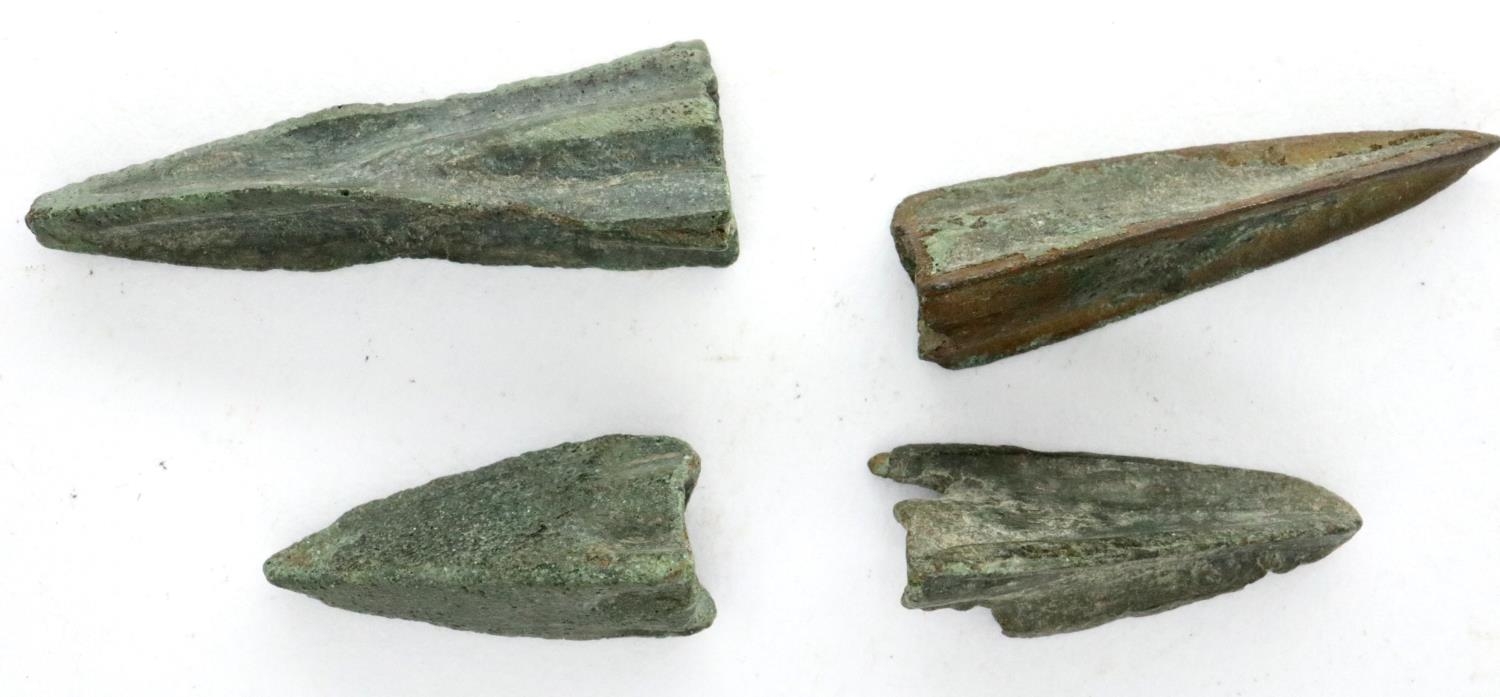 Four Roman bronze arrowheads, D: 30 mm. P&P Group 0 (£5+VAT for the first lot and £1+VAT for subsequent lots)