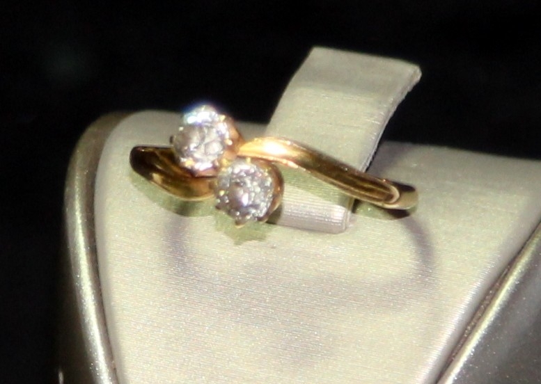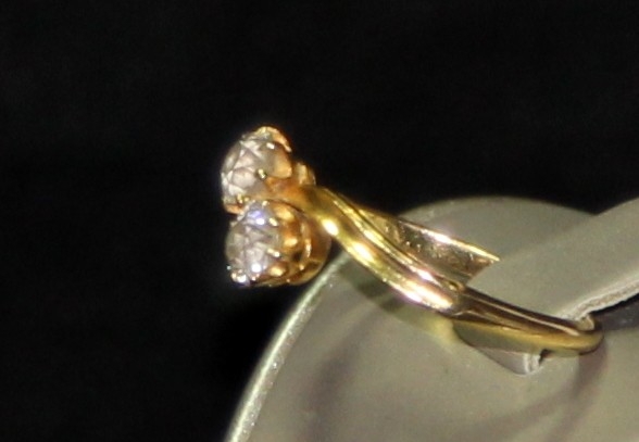 18ct gold double diamond twist ring size P. Each diamond approx 0.25ct. 3g