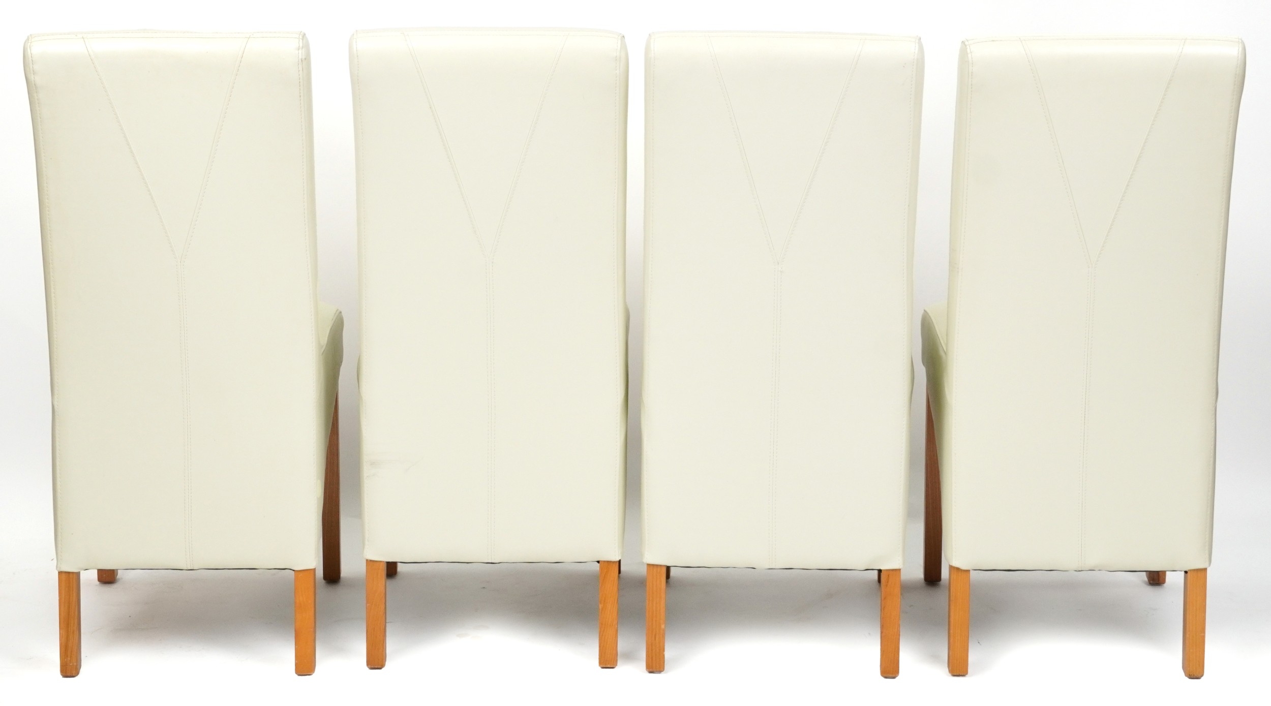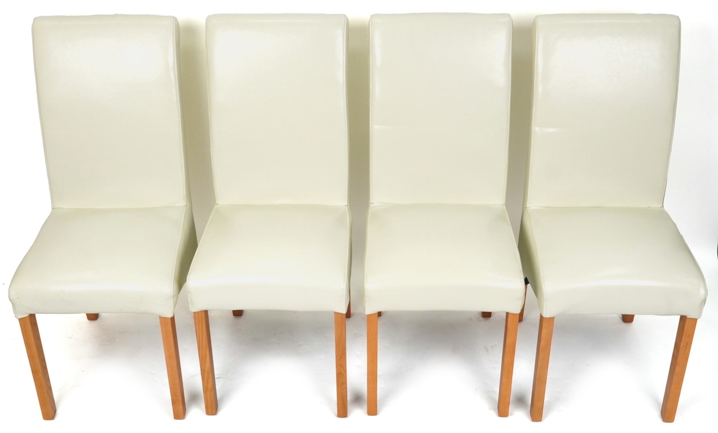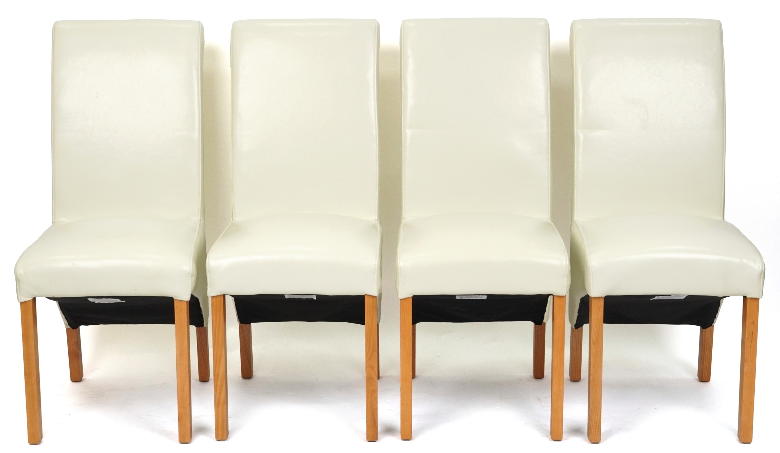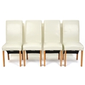 A set of four modern cream leather covered dining chairs, H-104cm