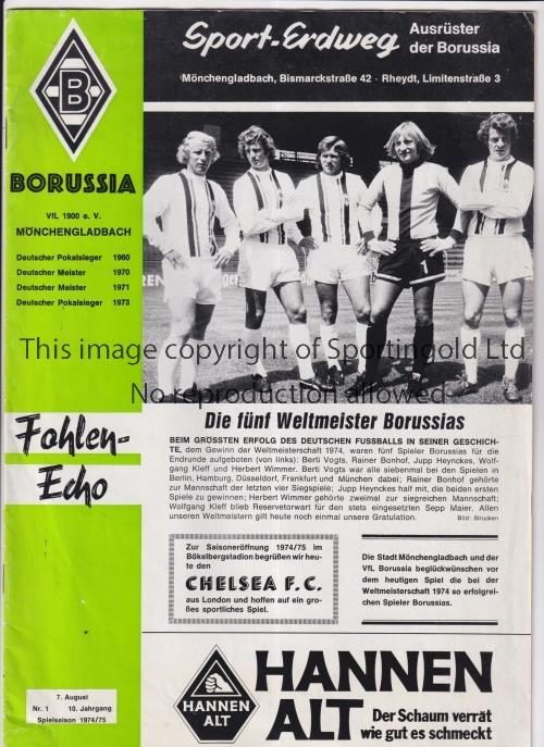 CHELSEA Programme for the away Friendly v Borussia Moenchengladbach 7/8/1974. Generally good