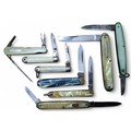 A Sheffield single blade pocket knife, the etched Stainless, brass linings, faux mother of pearl scales; others etc.