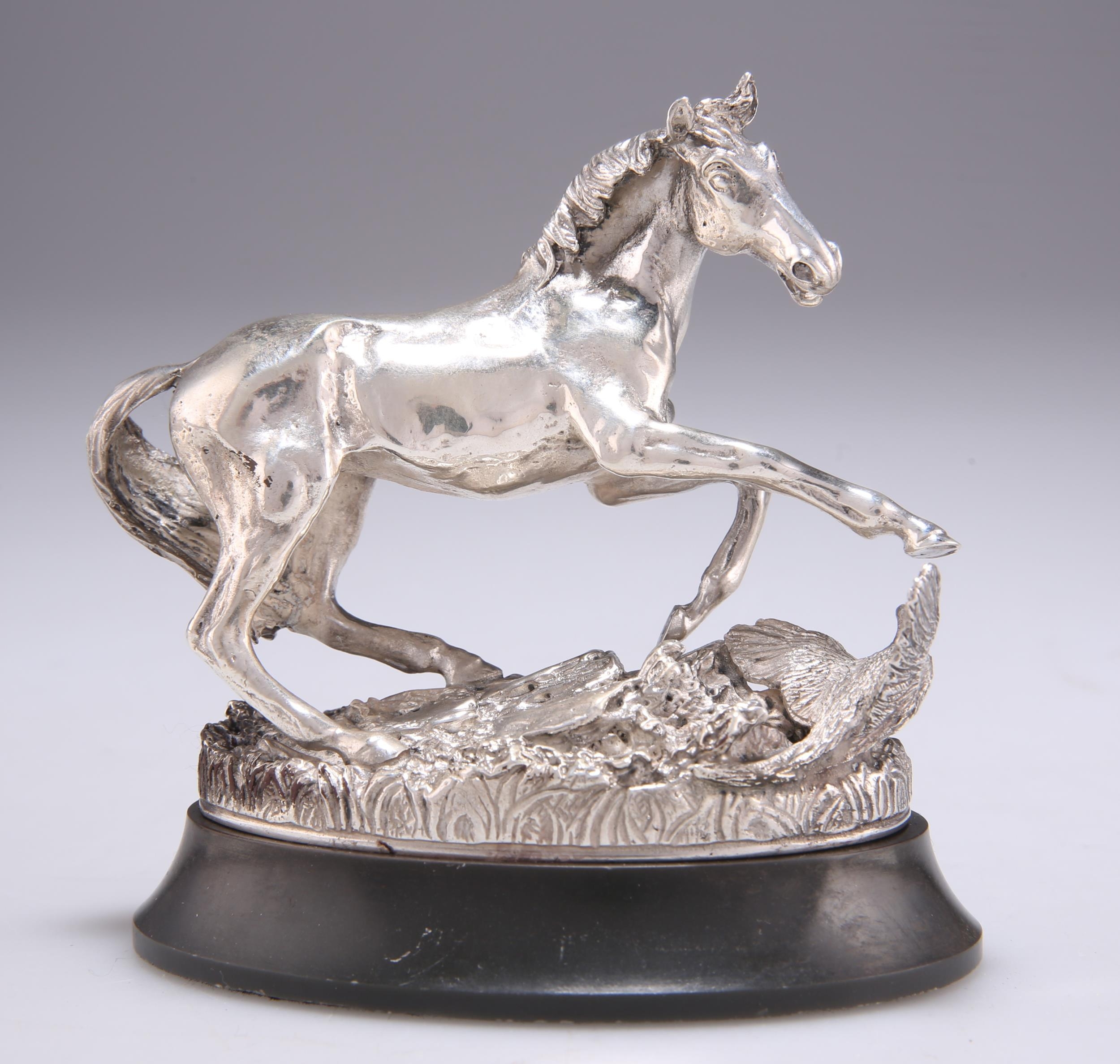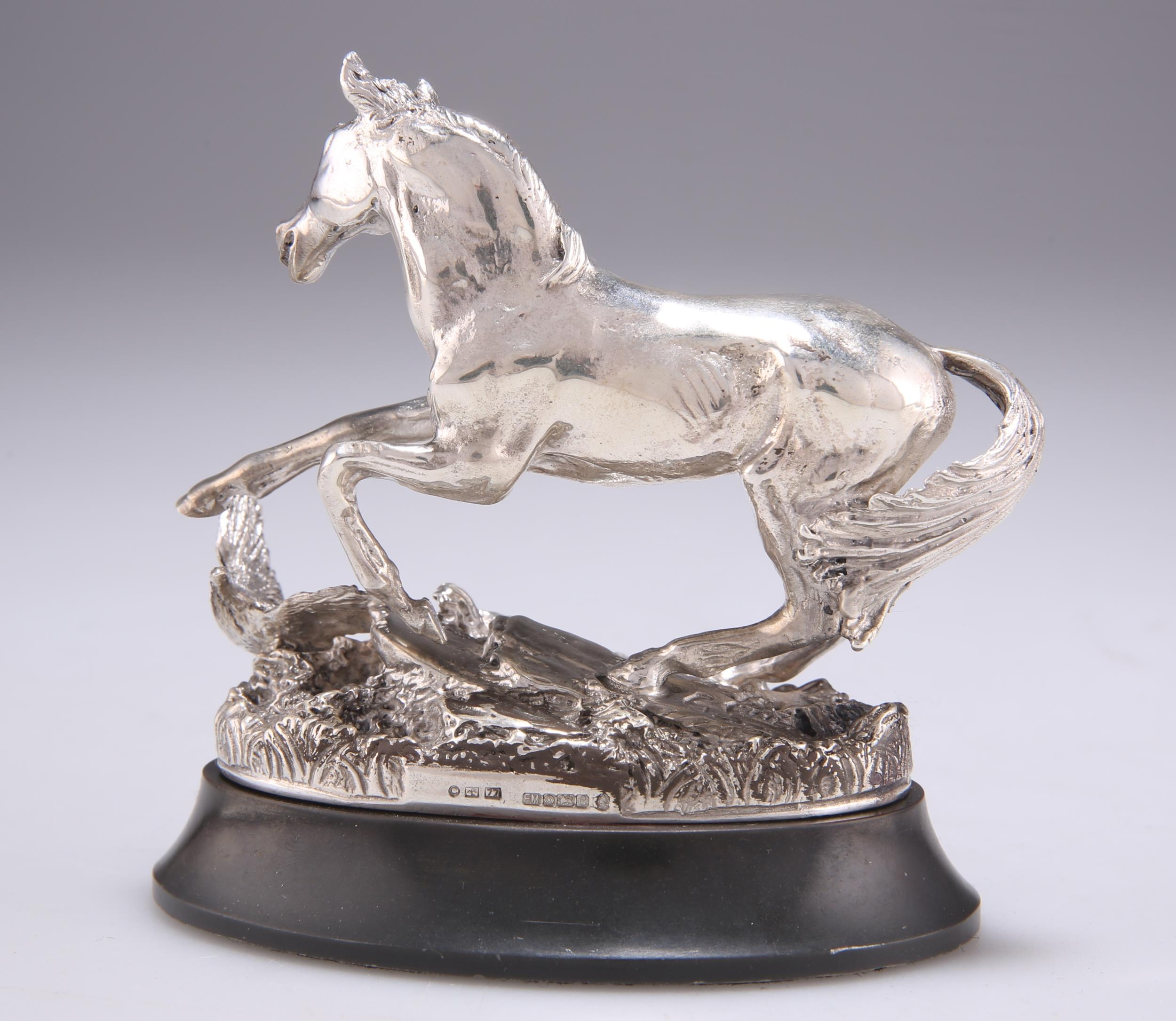 AN ELIZABETH II CAST SILVER MODEL OF A HORSE