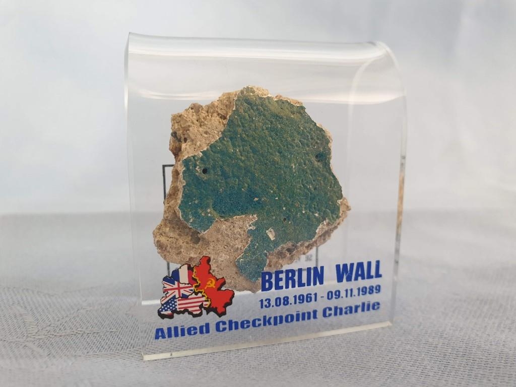 Small Chunk of the Berlin Wall (Allied Check Point Charlie, 13.08.1961 - 09.11.1989) in Perspex Stand