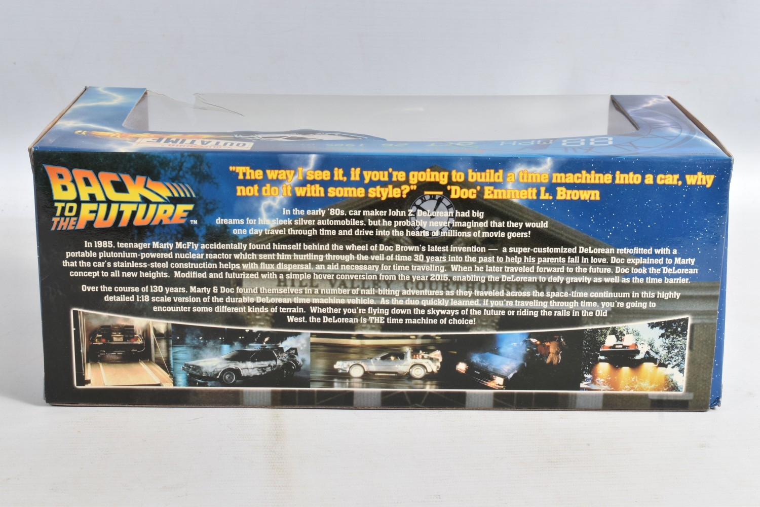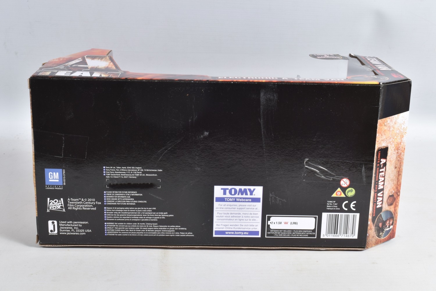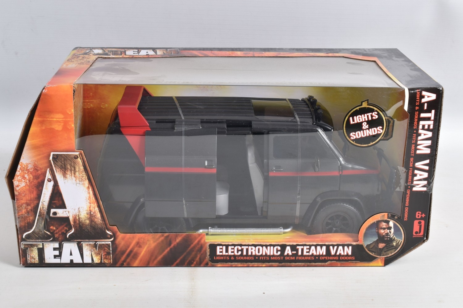 TWO BOXED FILM RELATED MODEL VEHICLES, the first a Tomy A Team electronic van, no. 71467, box still sealed, dust to top, the second a diecast Sun Star Back to the Future Time Machine, 1:18 scale, no. 2710, model appears new and never out of the box, but plastic window damaged with a hole