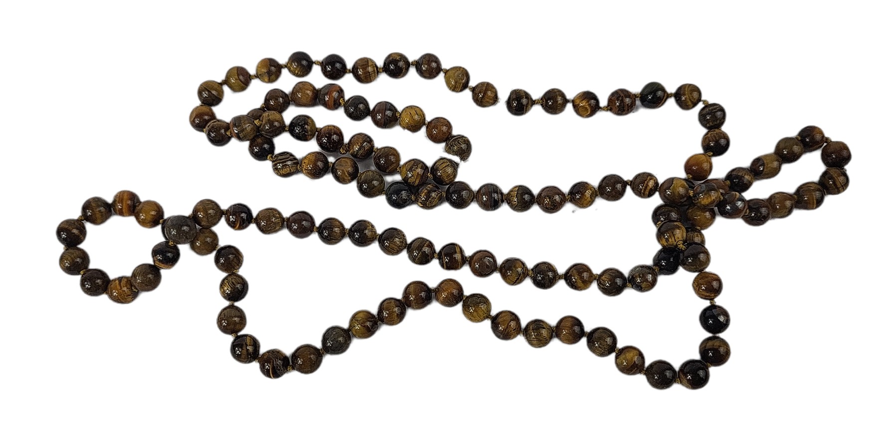 A STRING OF TIGERS-EYE ROUND BEADS.(length 56cm)Condition: good