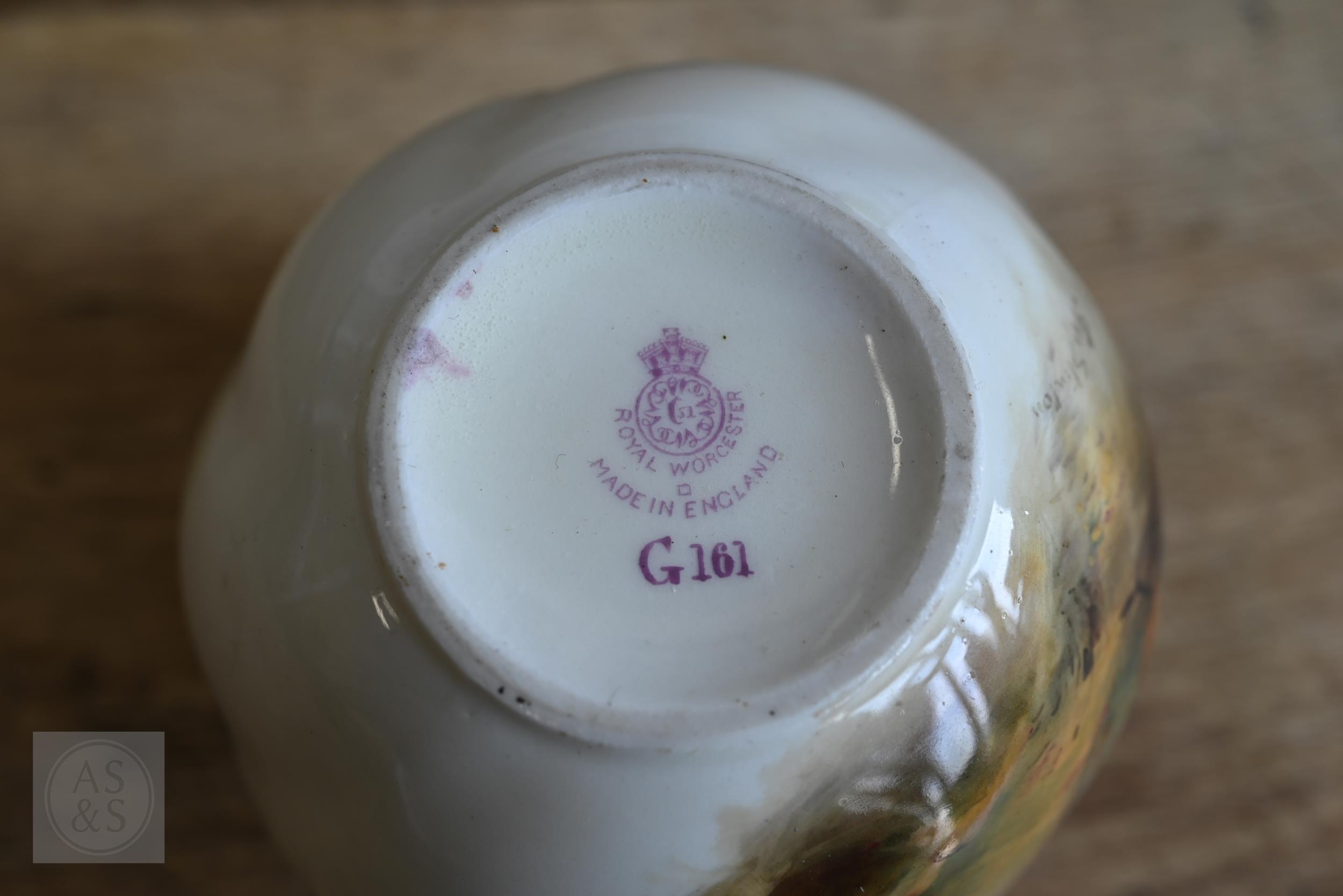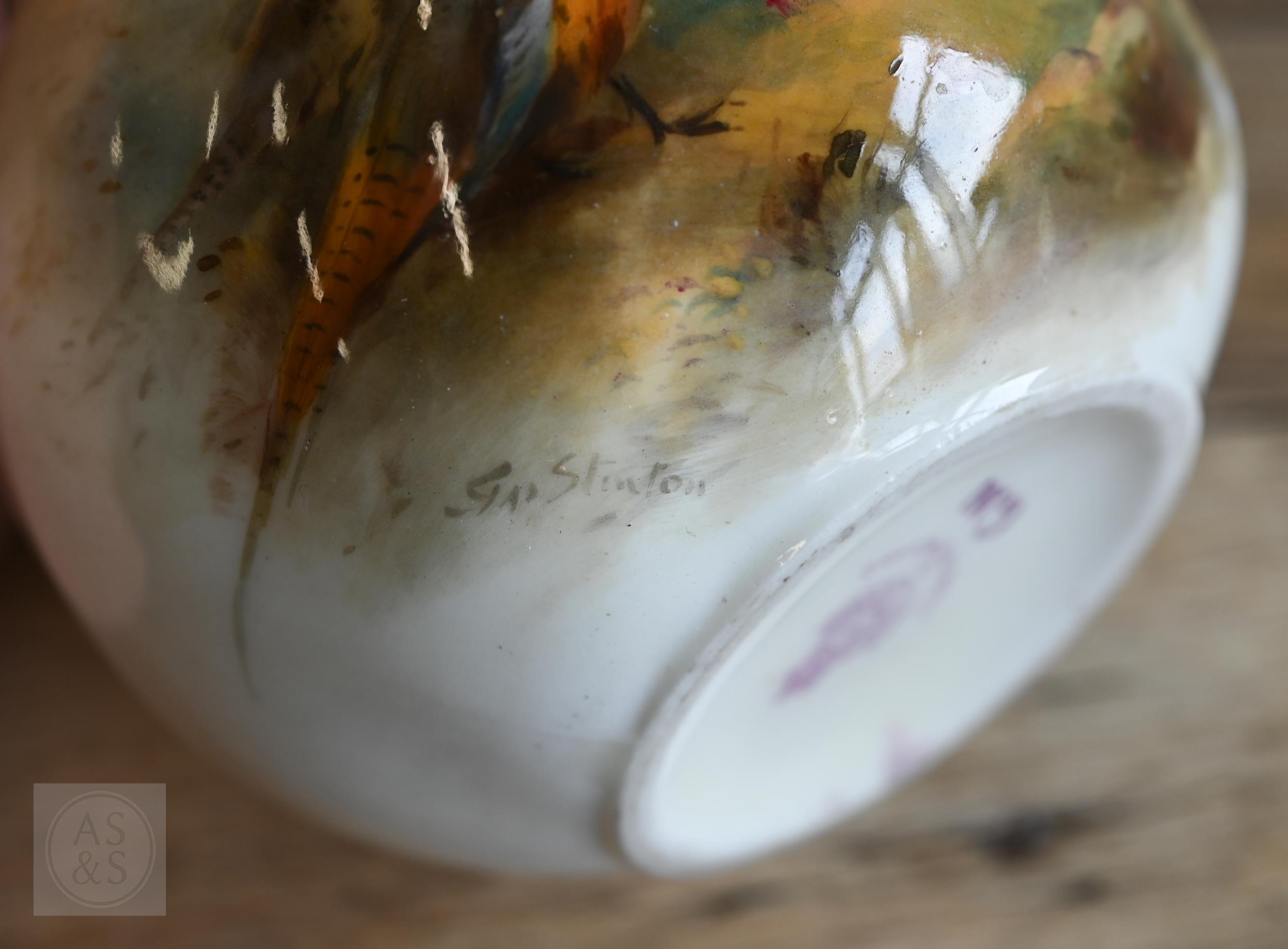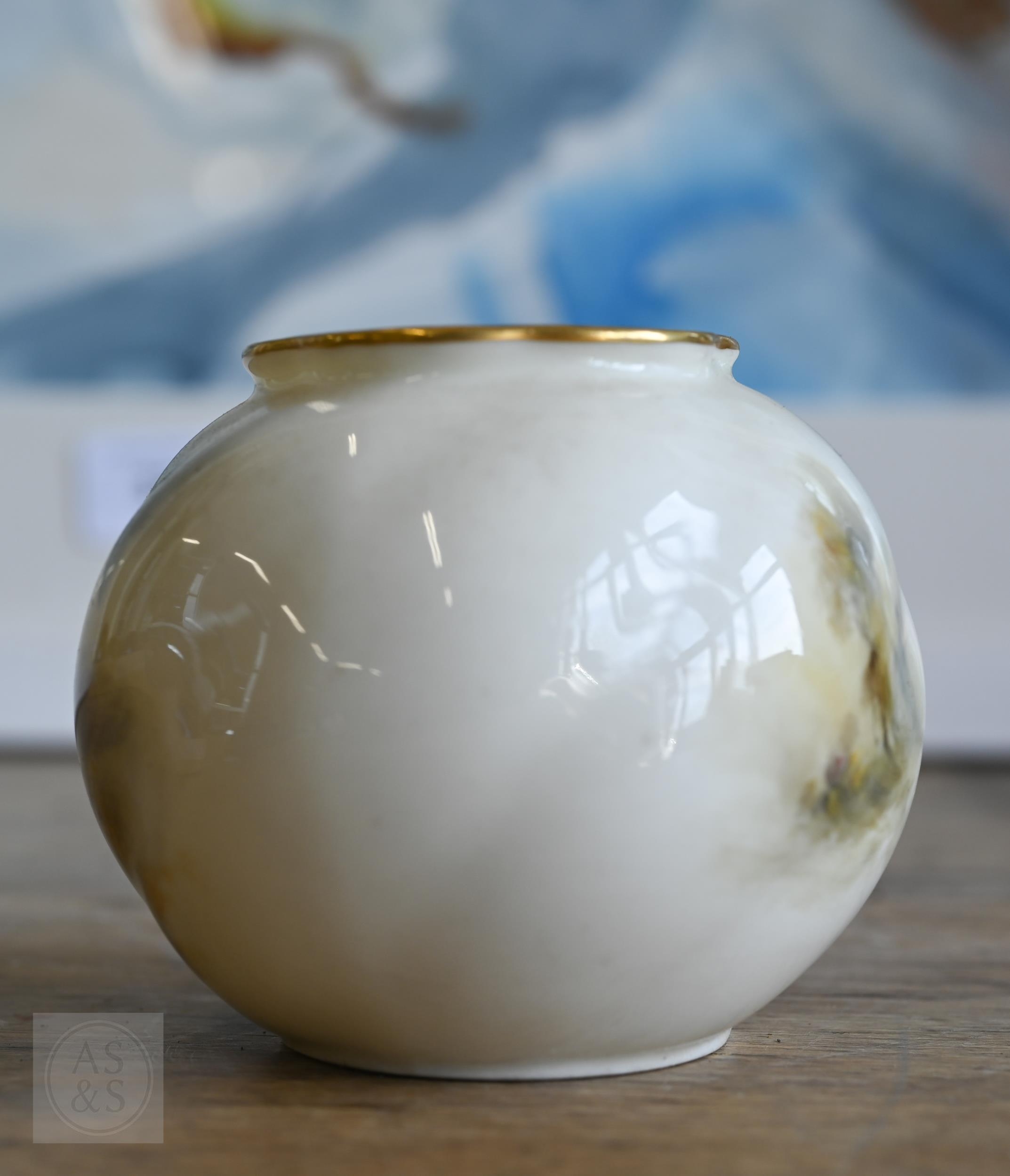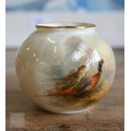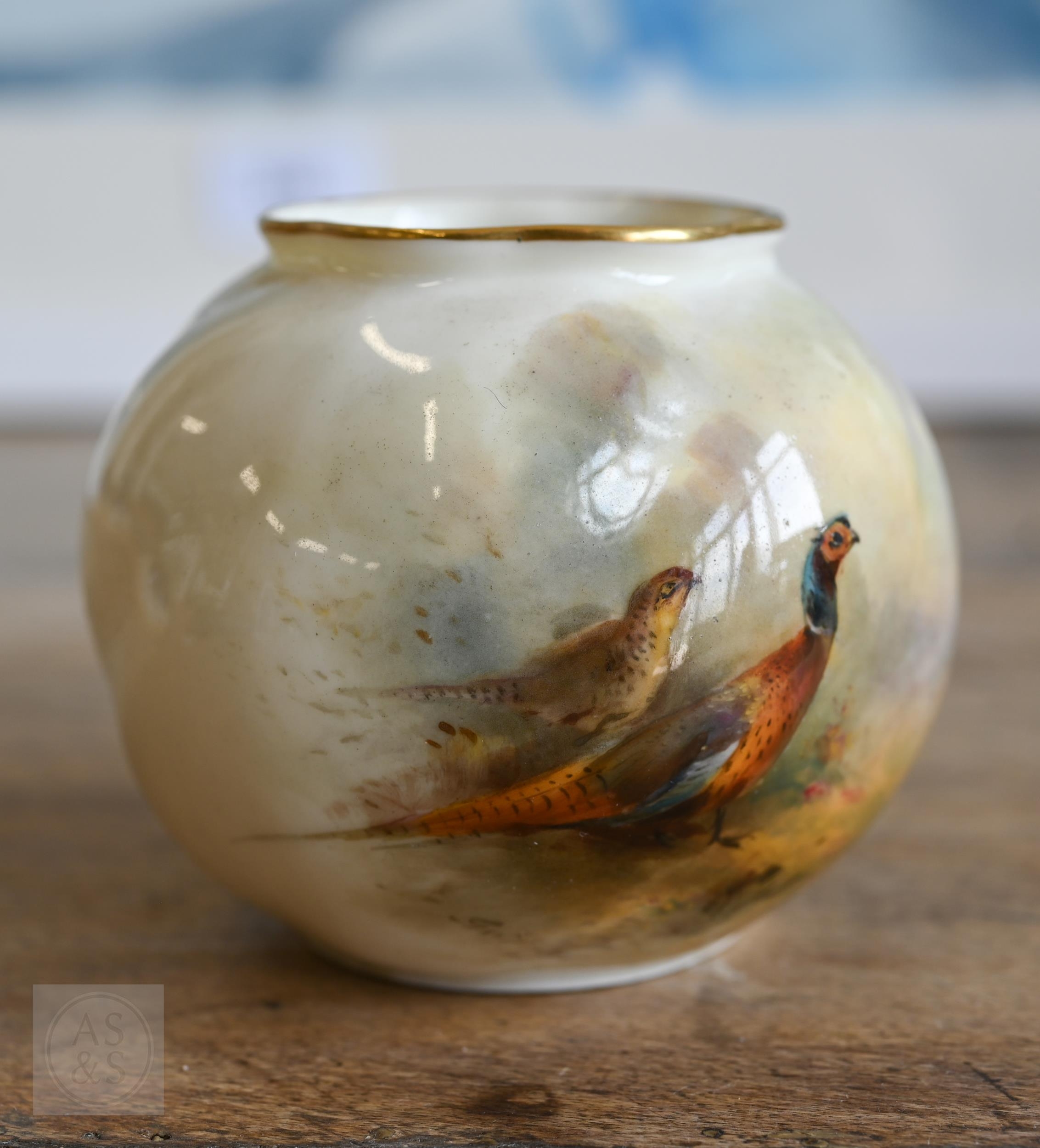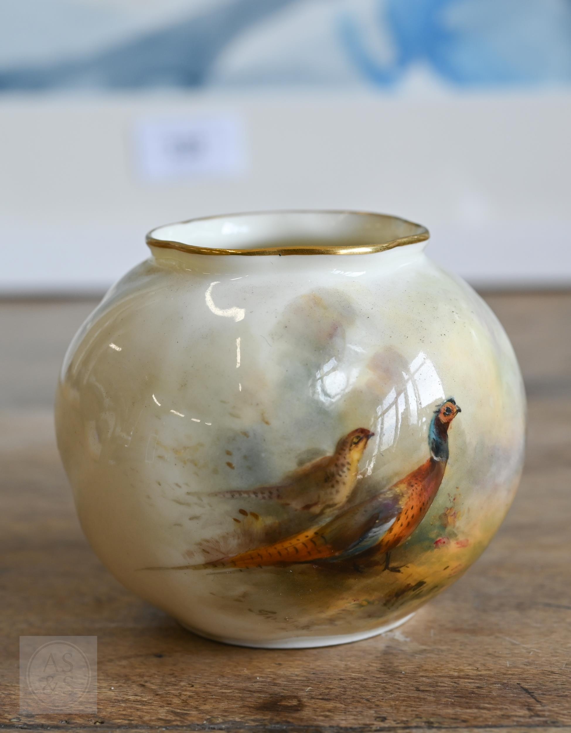 A small Royal Worcester globular vase, painted with pheasants by George Stinton, 1928, 6.5 cm high
