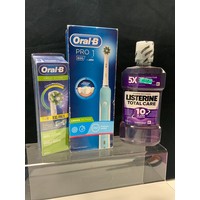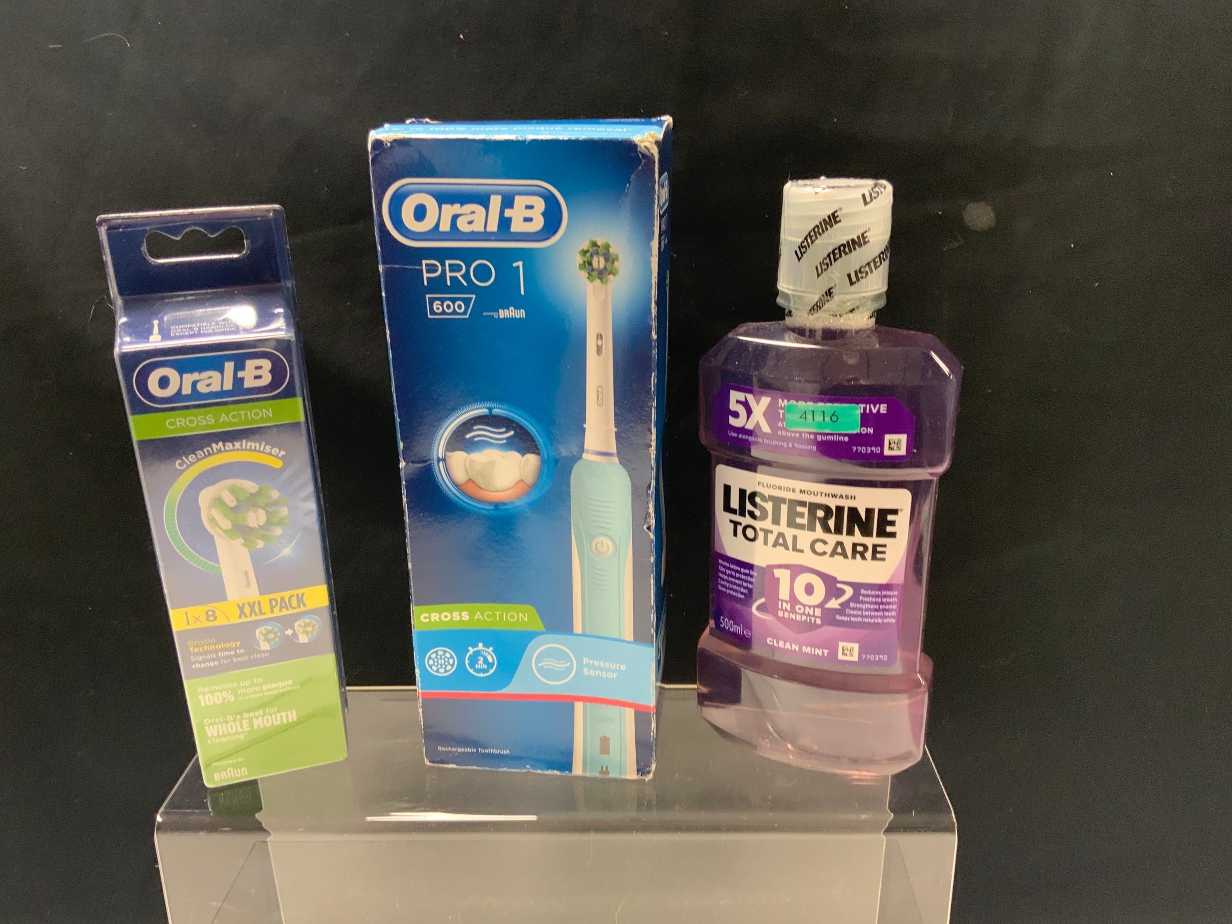 ORAL B PRO 1 CROSS ACITON ELECTRIC TOOTHBRUSH, 1 XXL PACK OF CROSS ACTION TOOTHBRUSH HEADS, 1 BOTTLE OF LISTERINE 500ML TOTAL RRP £57.36 ( P23078829 / C )