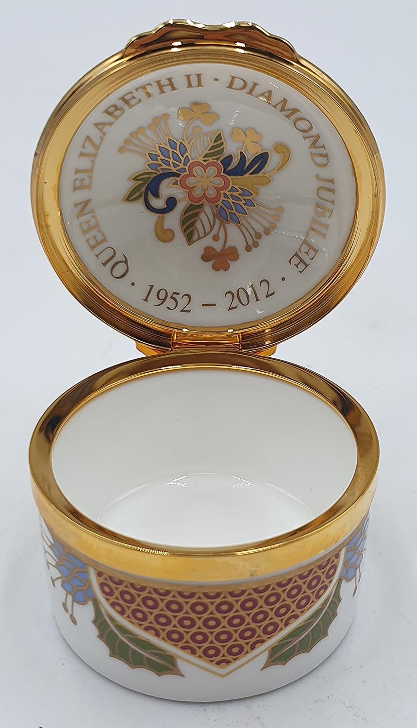 ROYAL WORCESTER CHINA 5cm Dia "QUEEN ELIZABETH DIAMOND JUBLIEE" HINGED BOX