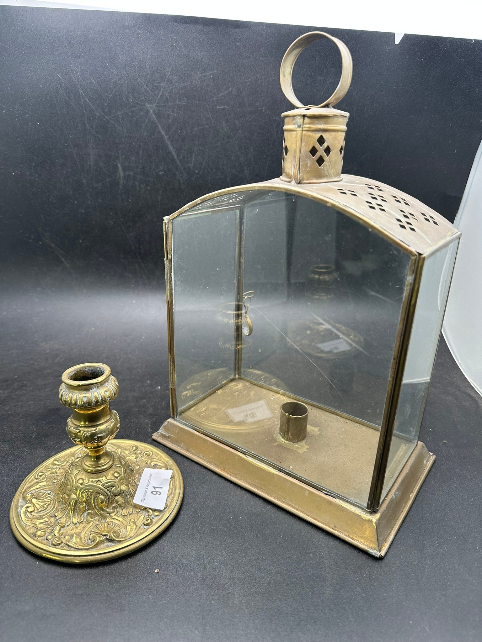 Vintage brass candle stick and lantern