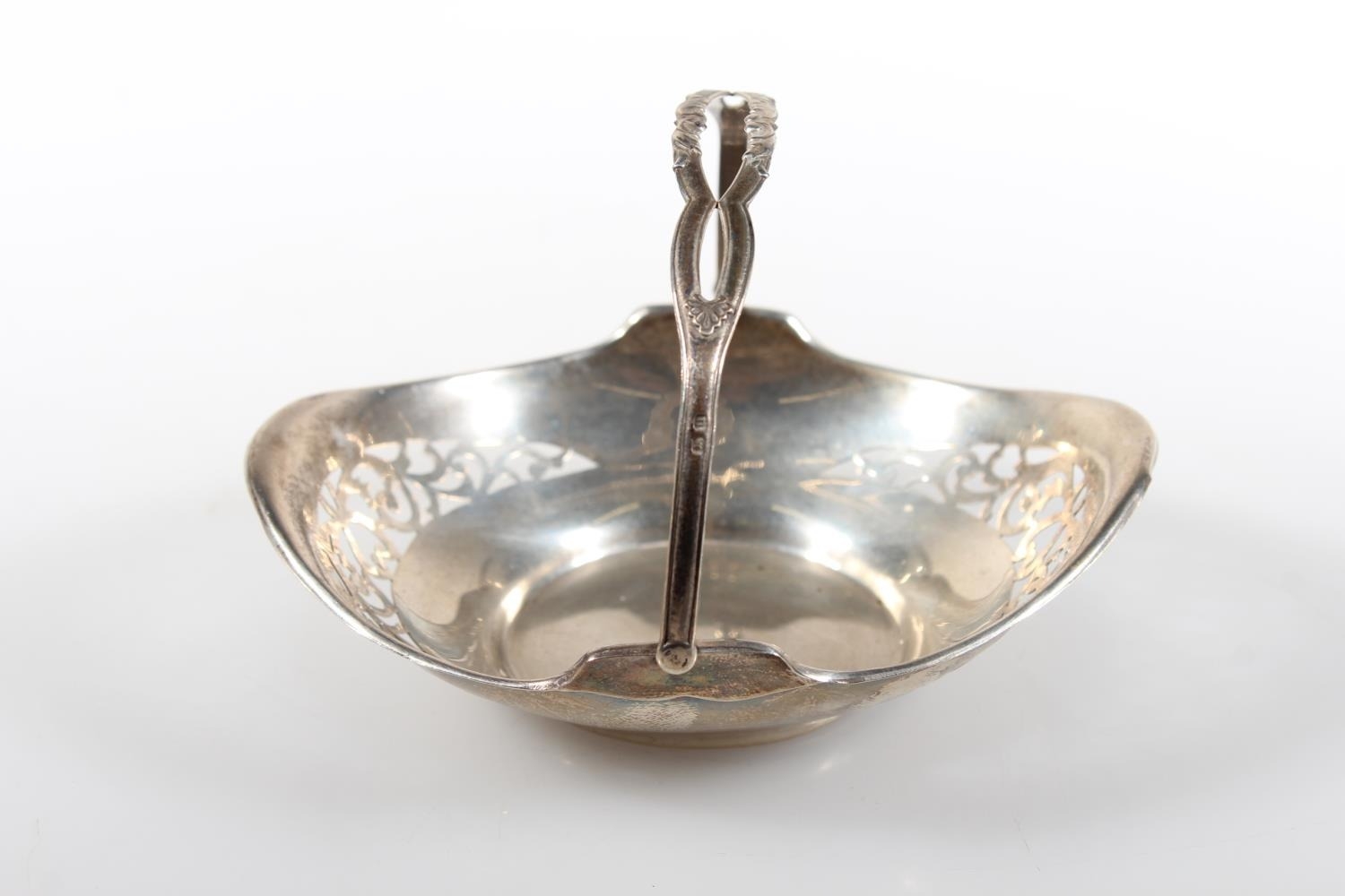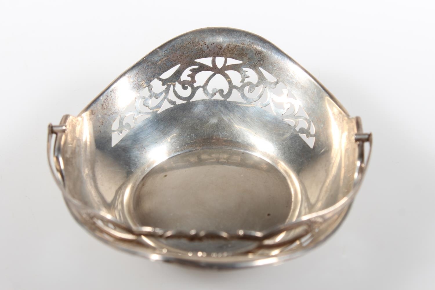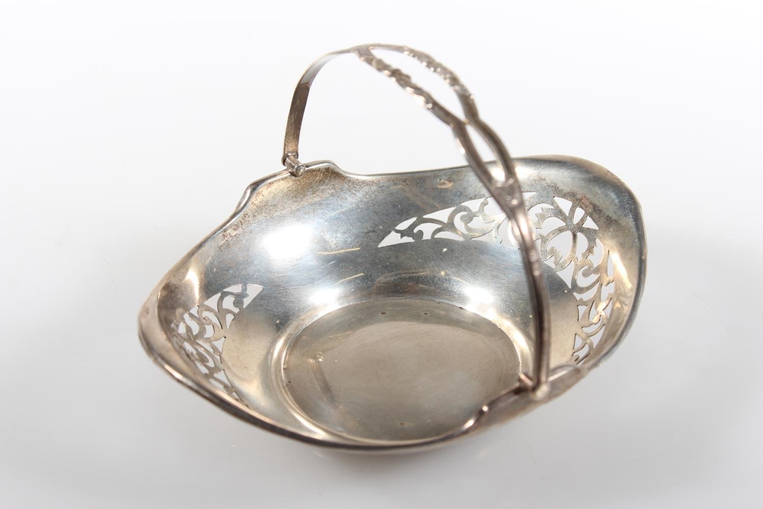 Silver swing handled pierced basket, maker HM, Birmingham, 45g.