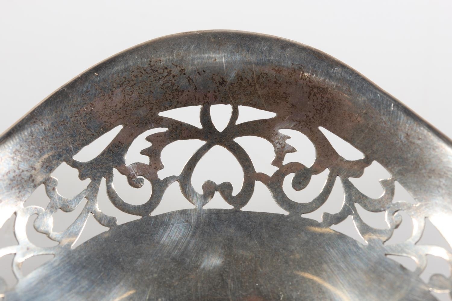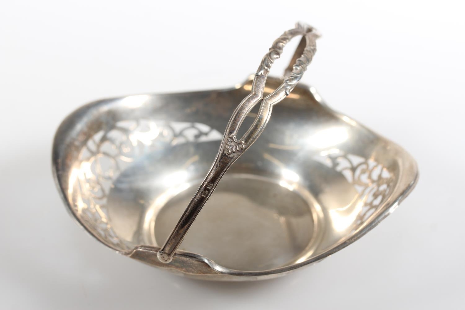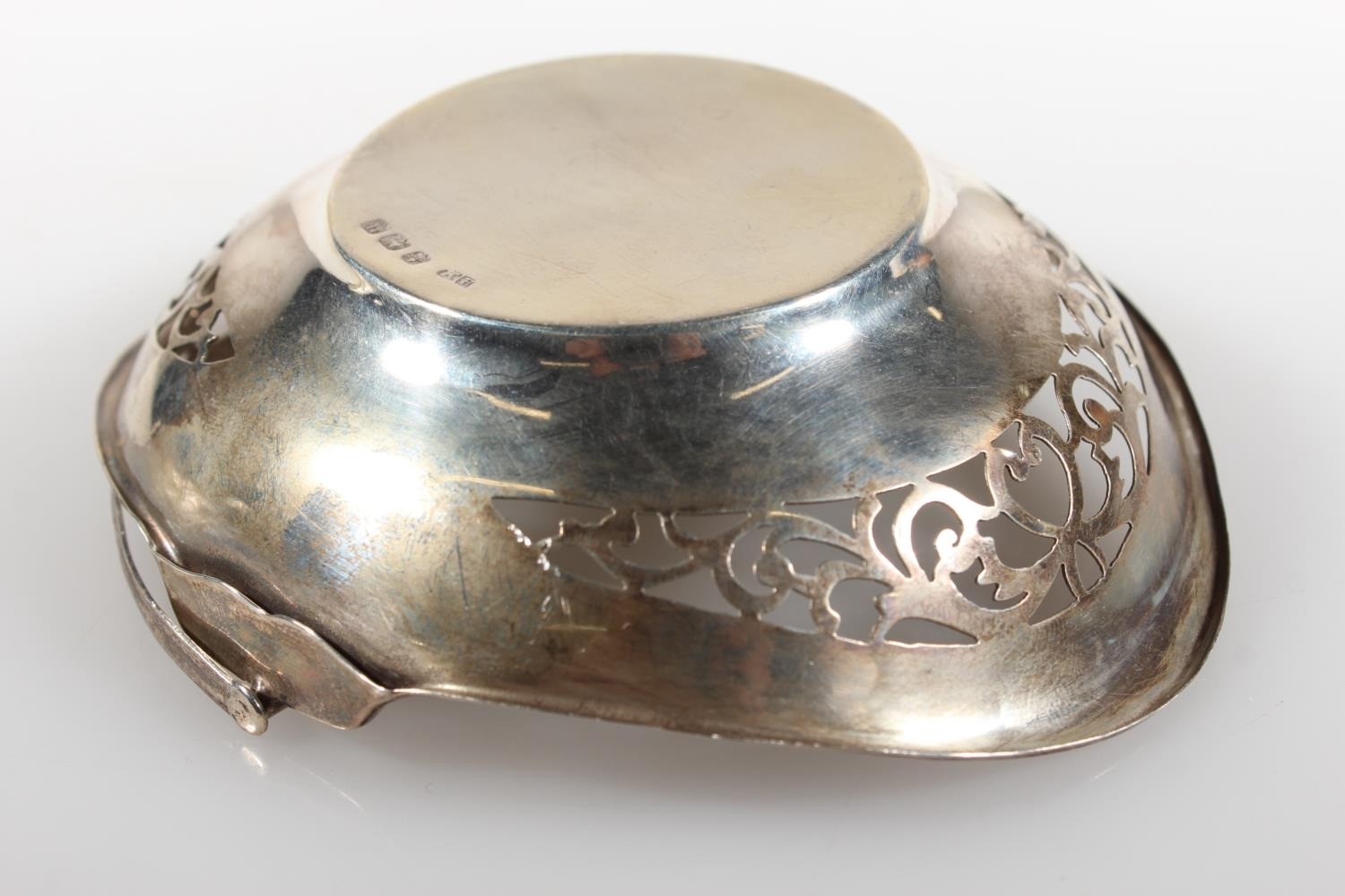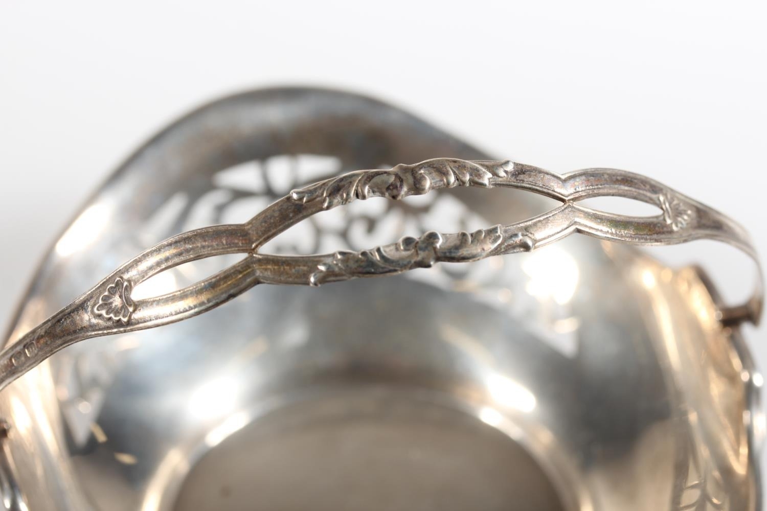 Silver swing handled pierced basket, maker HM, Birmingham, 45g.