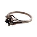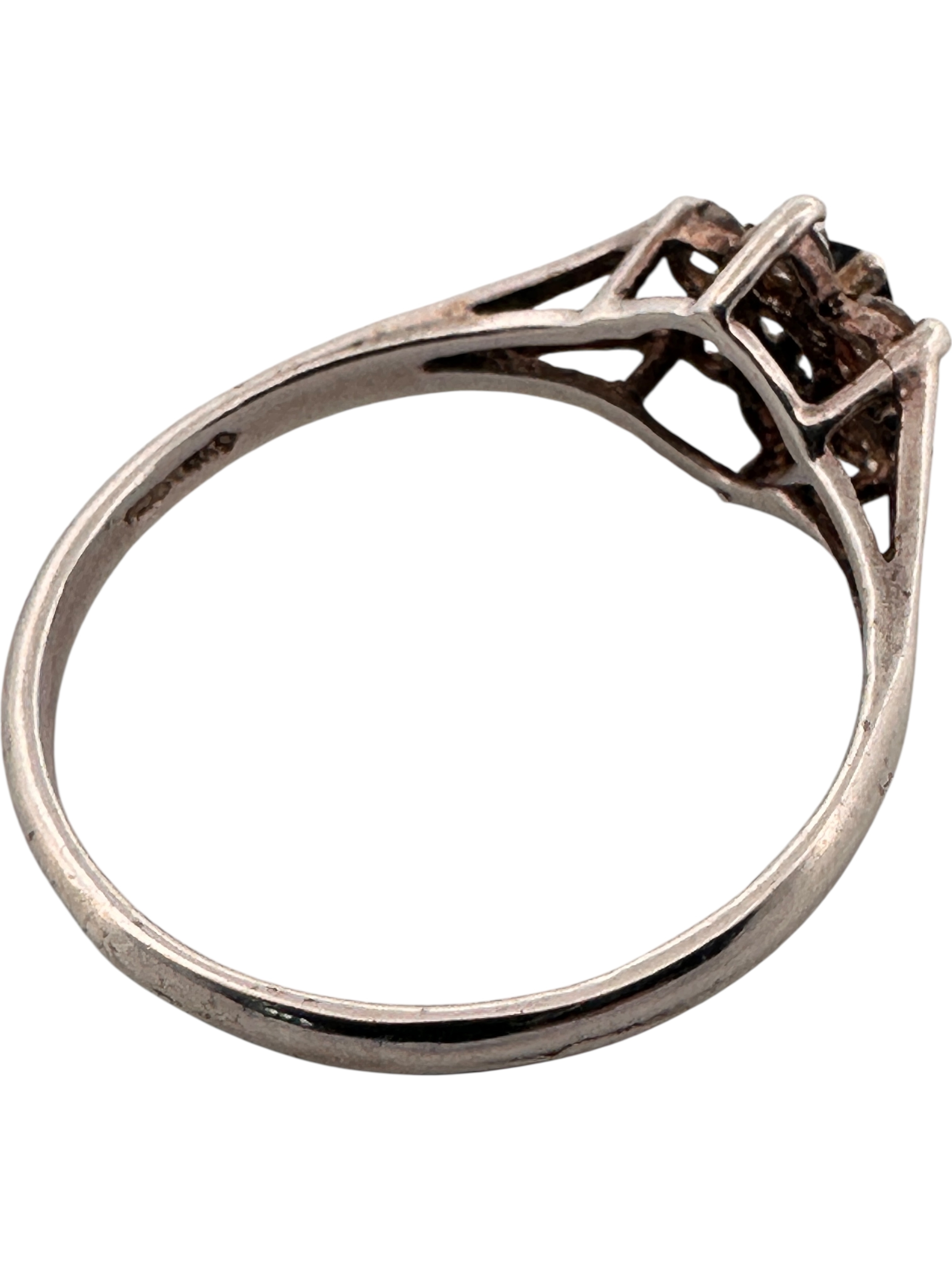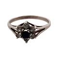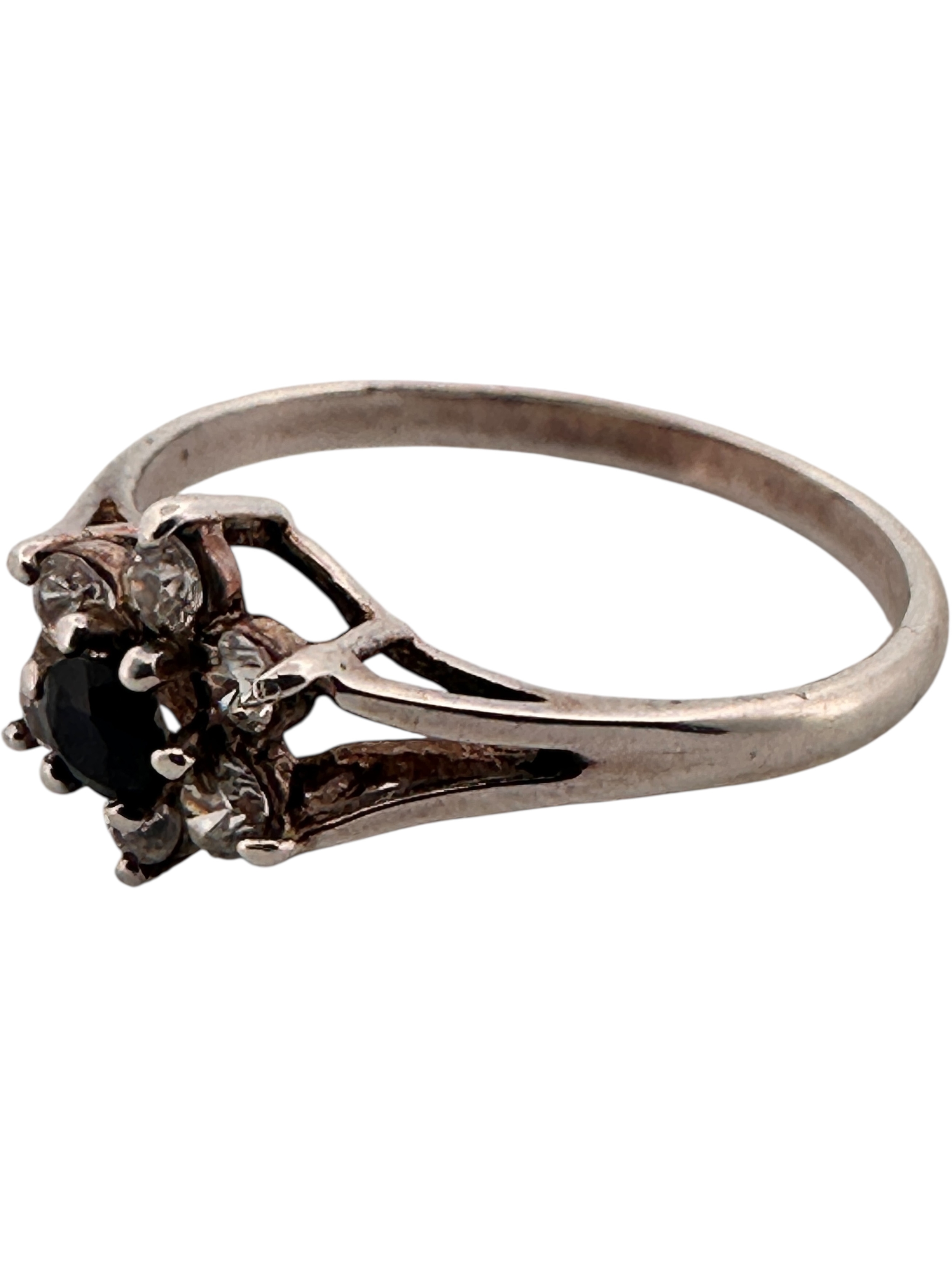 Silver Ring set with Small White Stones & One Black. Size P