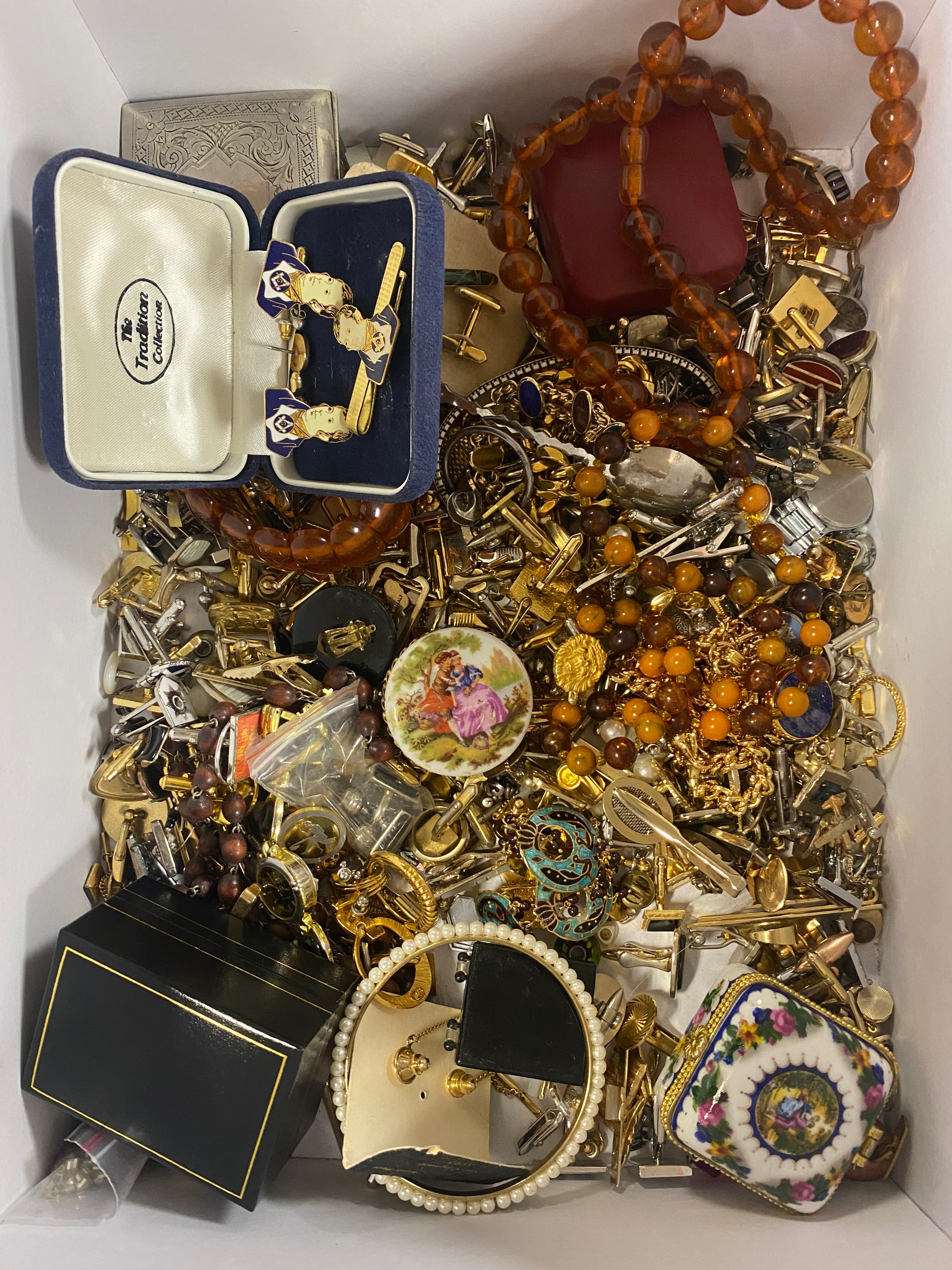 A quantity of costume jewellery, cufflinks etc -