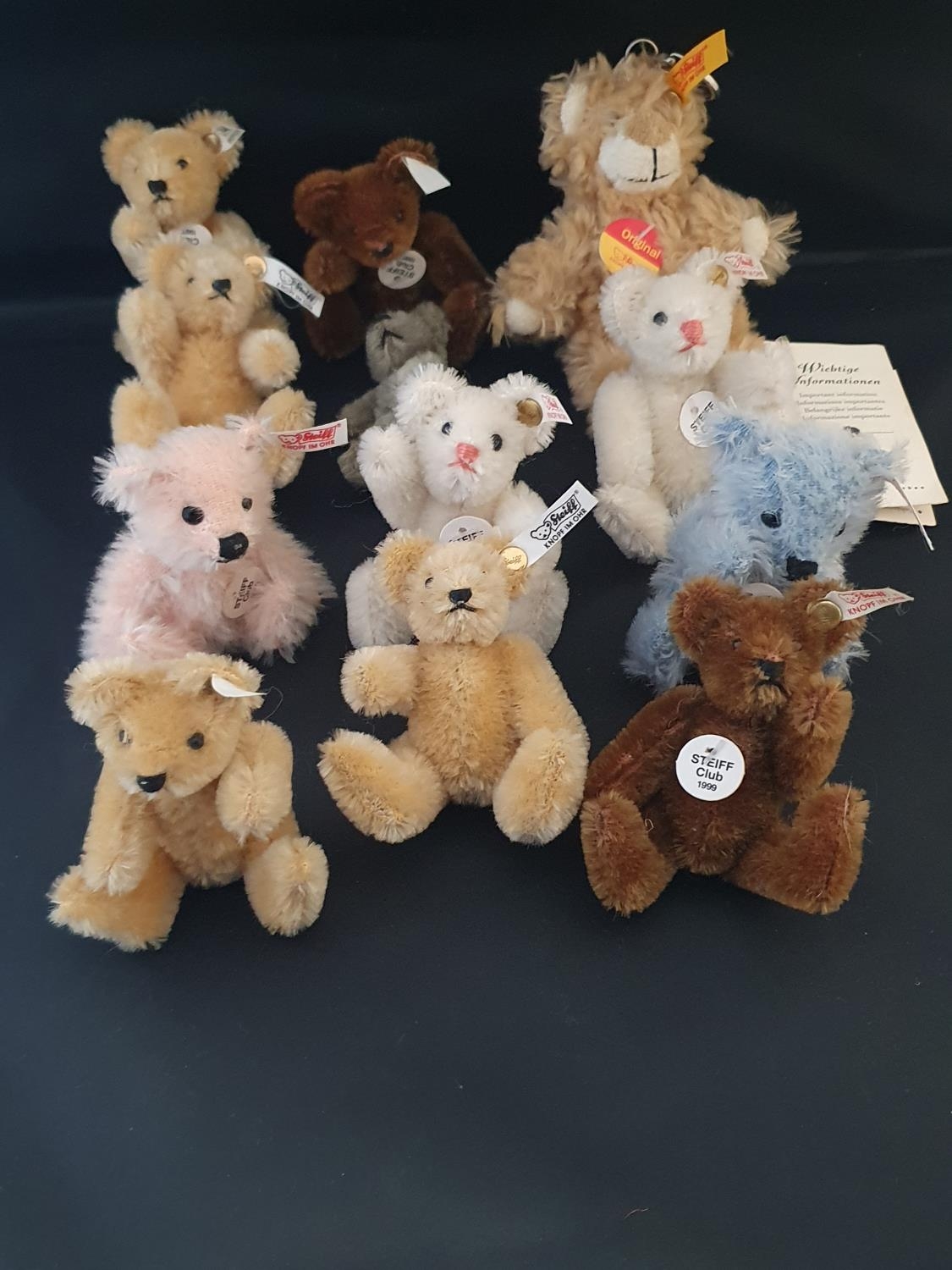 Eleven Steiff Club miniature bears plus a Steiff keyring