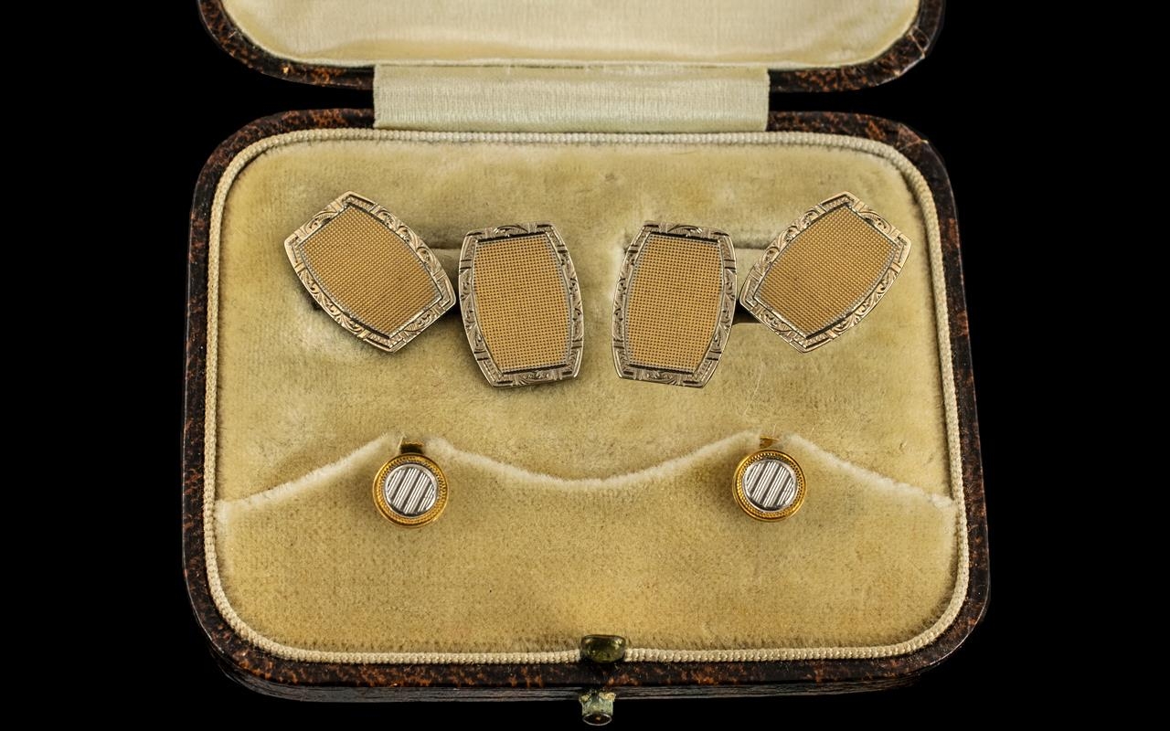 Gentleman's 9ct Gold Pair of Engine Turned Cufflinks with Matching Pair of Studs. In Original Box. Hallmark Birmingham 1930, Wonderful Condition and Quality. Gold Weight 6 grams.