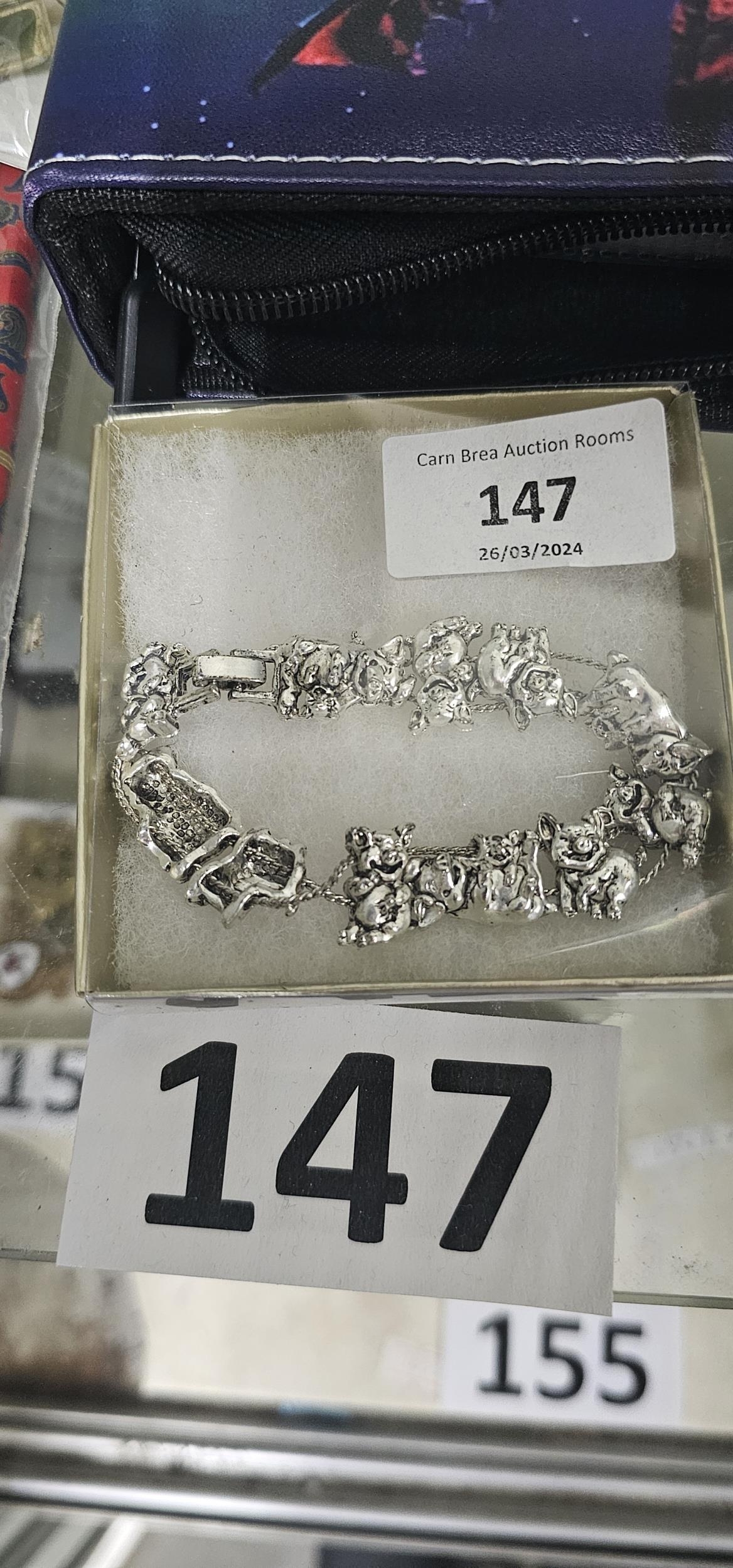 happy piglets white metal bracelet