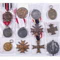 A group of WWI and WWII German medals including: Cross of Honour 1914-1918, War Merit cross, Atlantic Wall medal and others.