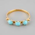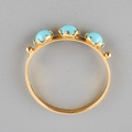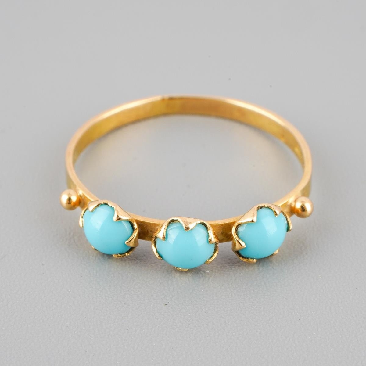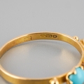 An 18k gold three stone ring set with turquoise, UK size L, gross weight approx. 1.2g