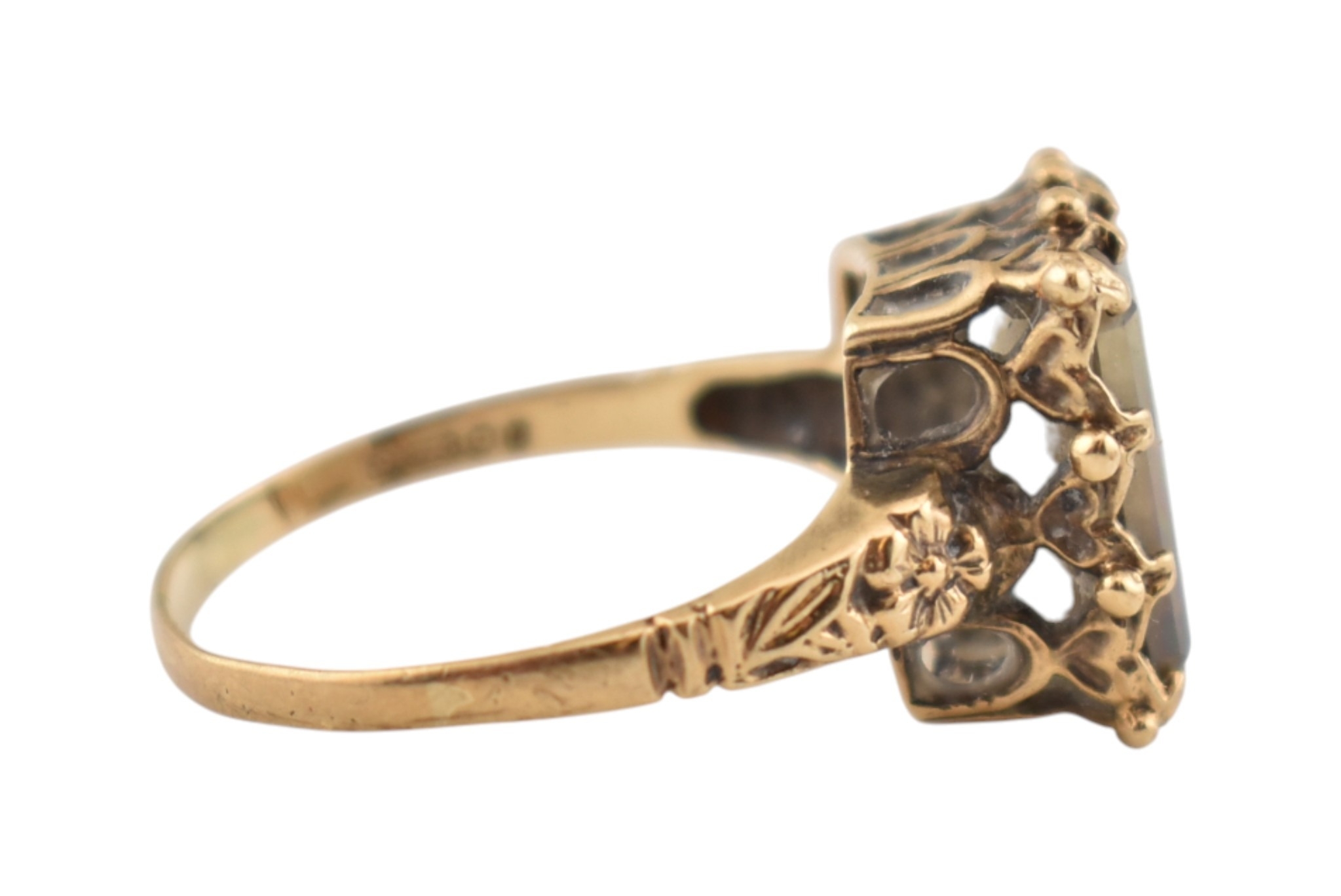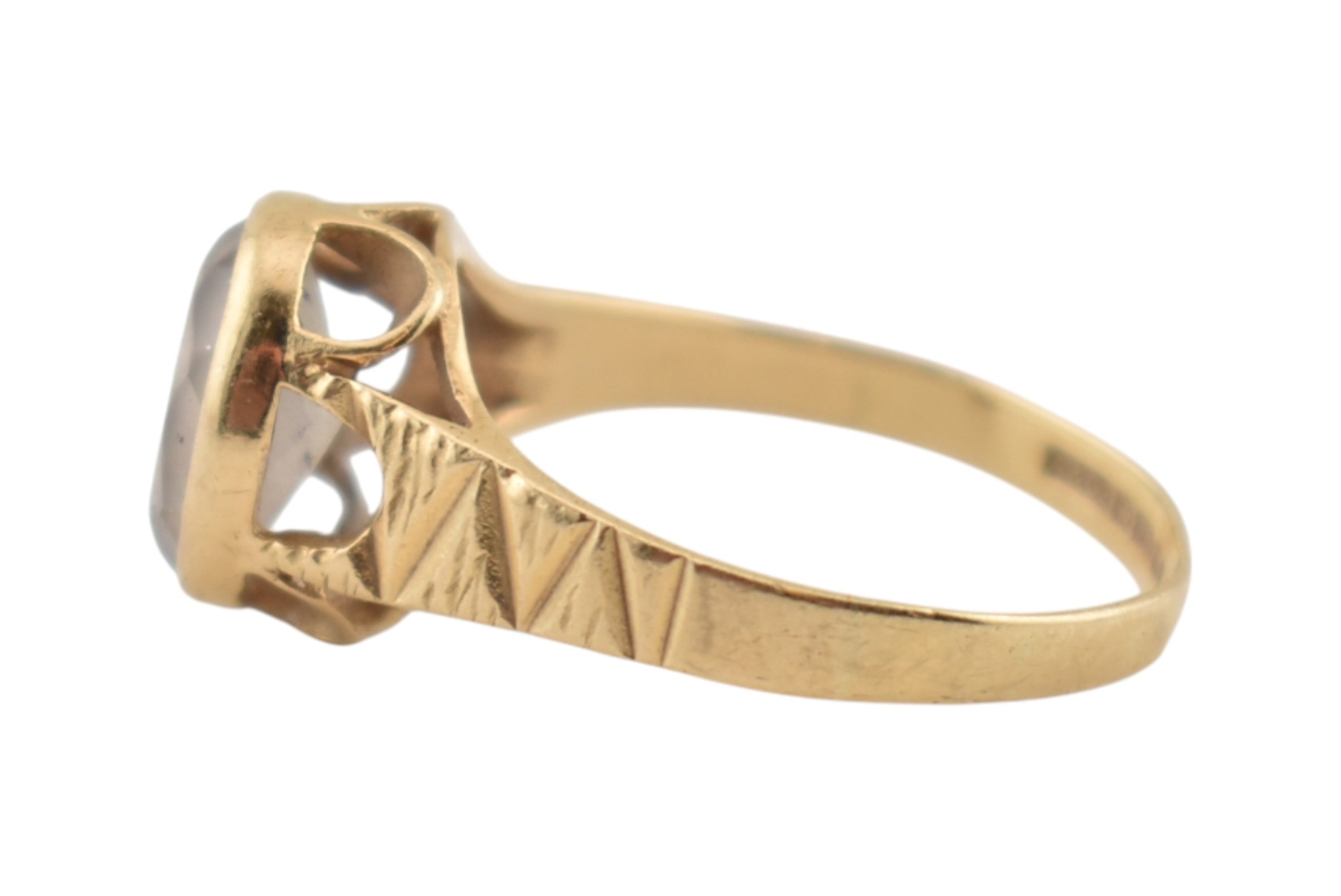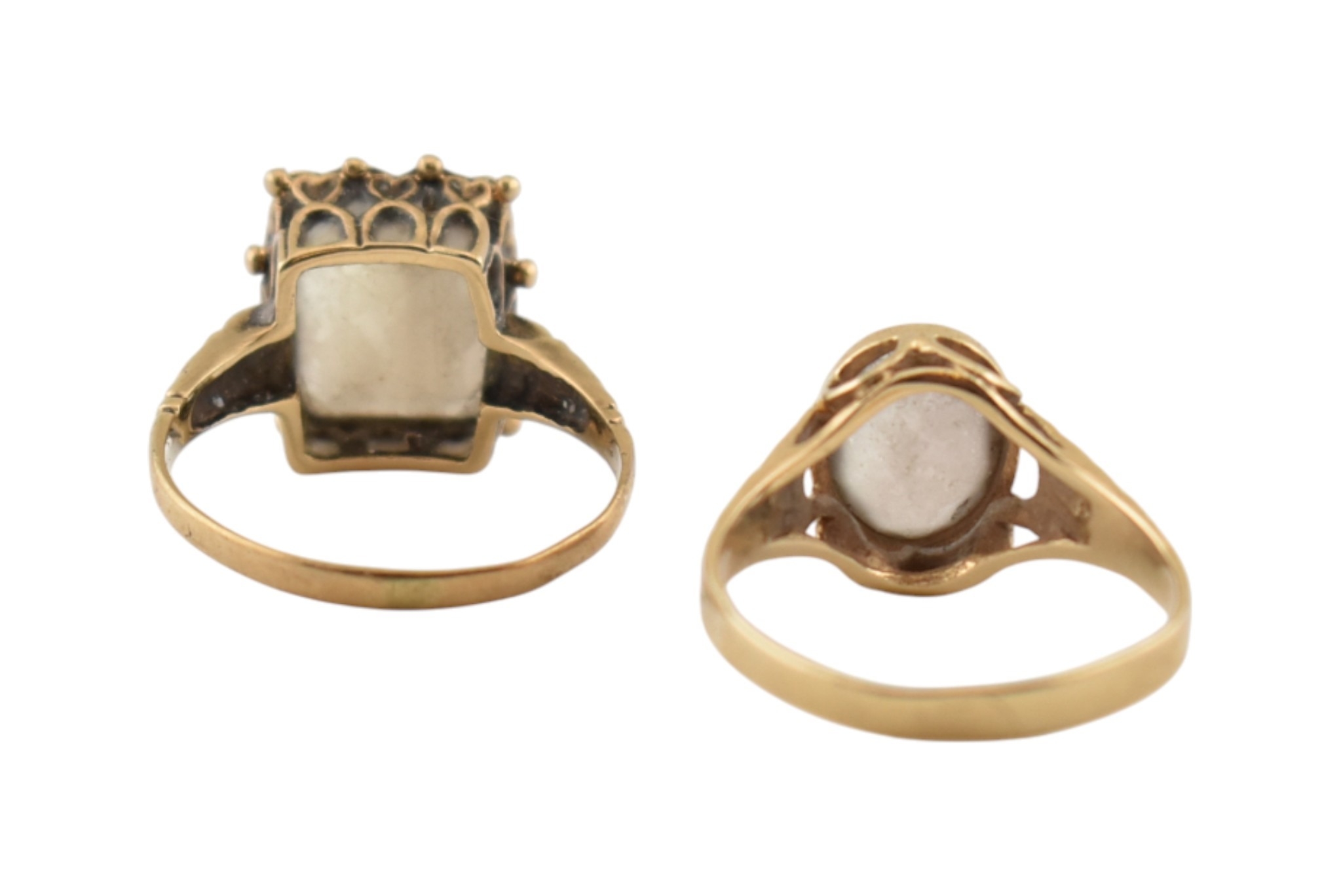 Two hallmarked 9ct gold single stone rings. Each with single quartz / white stones. Hallmarked London & Birmingham. Total weight 5.8g.