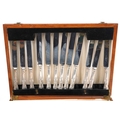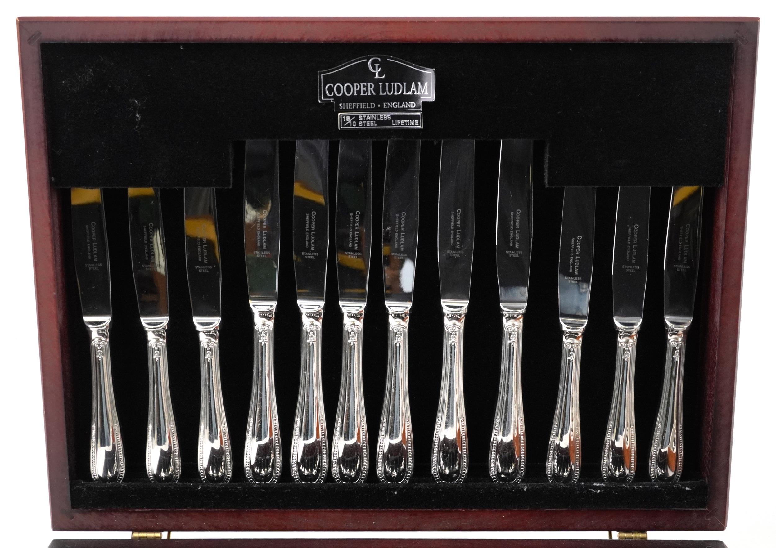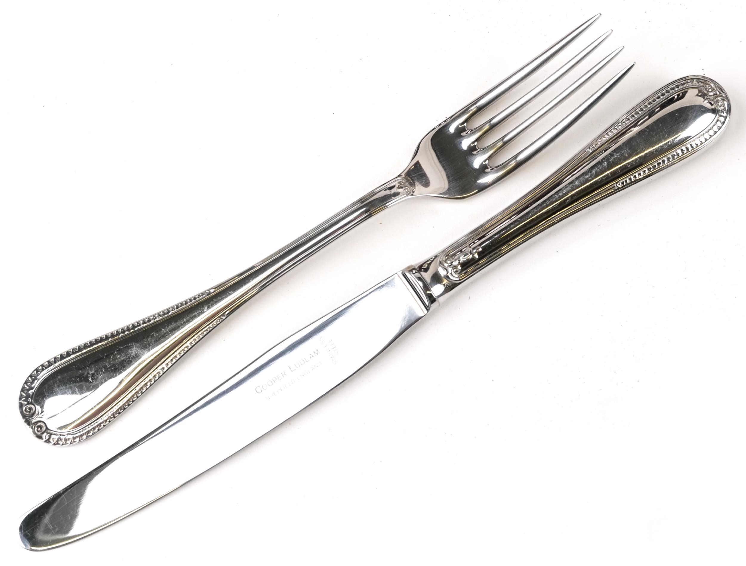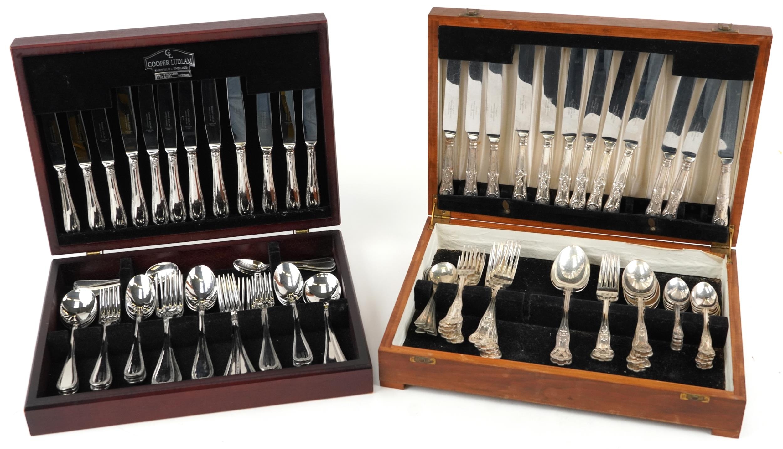 A George V Sheffield plated canteen of cutlery by Dawson, with an oak case together with a Cooper Ludlam canteen of cutlery.