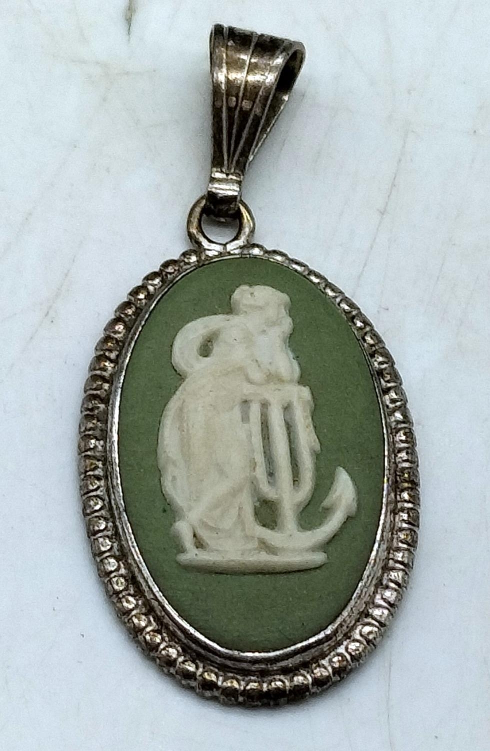 Wedgwood Green Jasper and Silver Pendant.