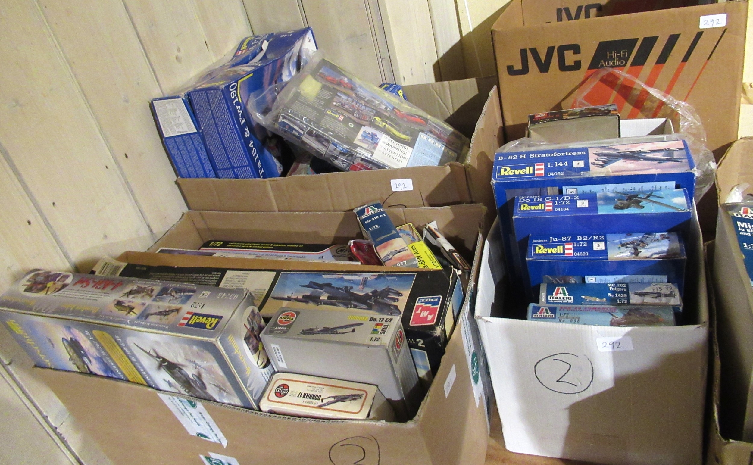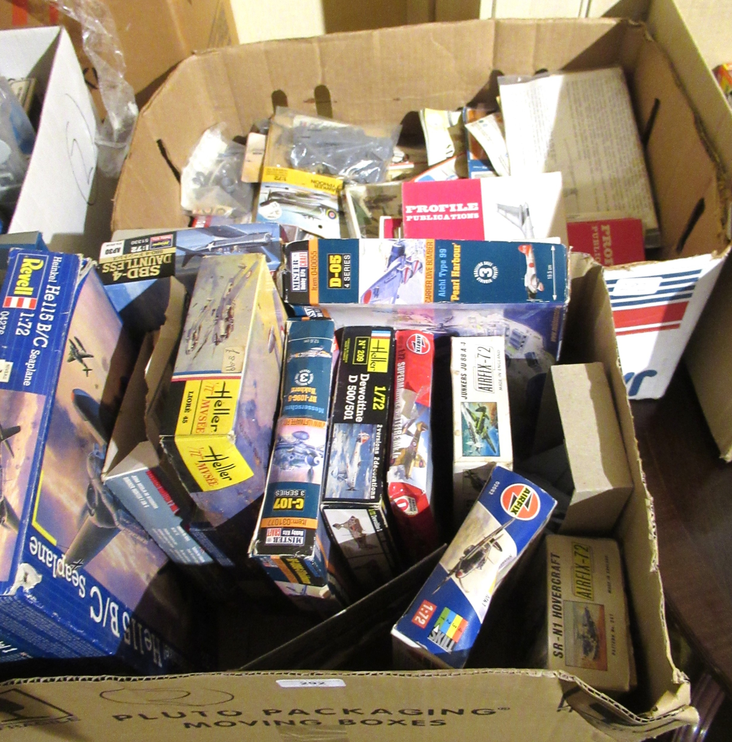Six boxes containing a quantity of various un-built model aircraft kits by Airfix, Revel, Tamiya, Italia etc (some bagged)