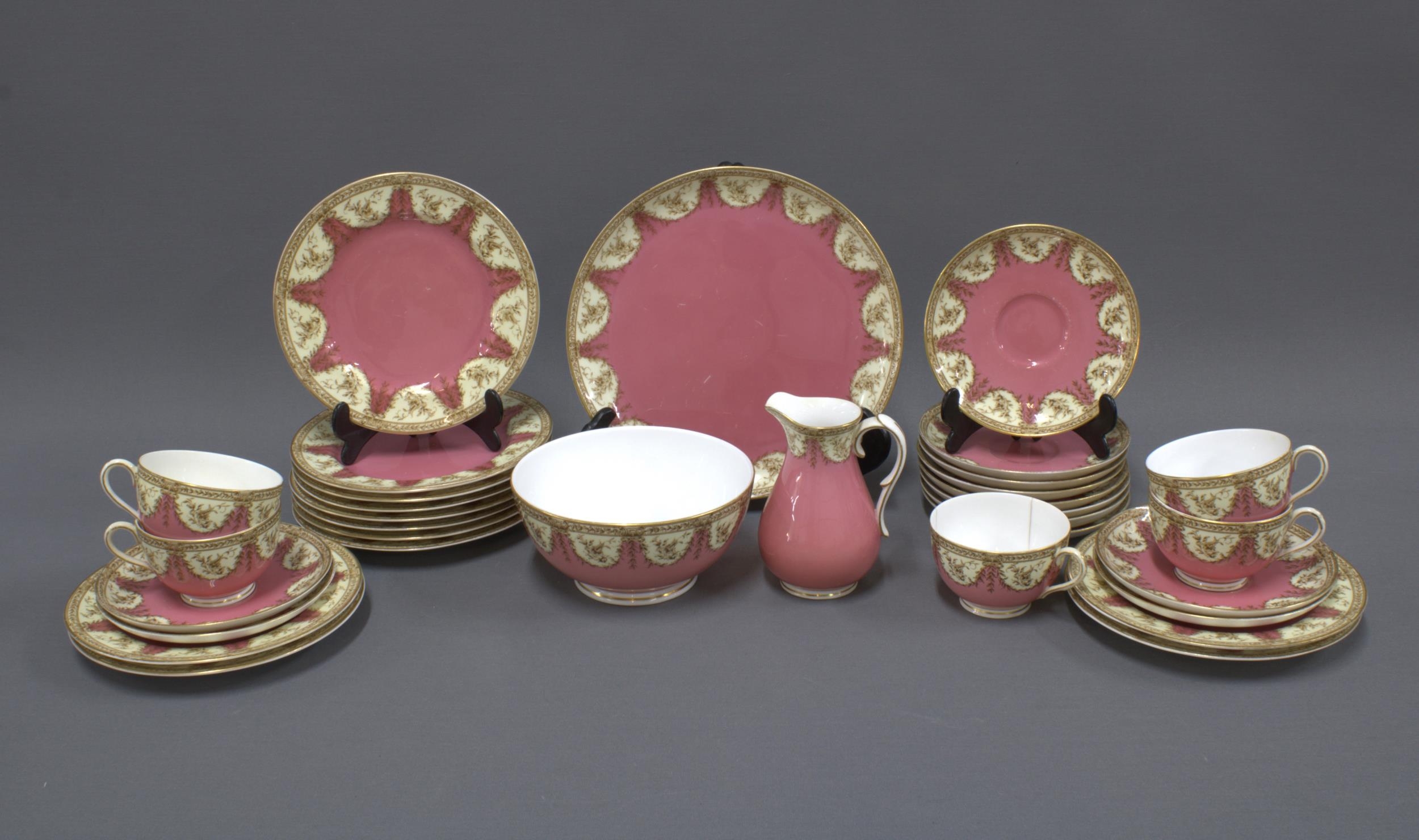 Royal Worcester part tea set, including cups, saucers, plates, cream jug and sugar bowl, and cake plate, pattern 4451 (32)
