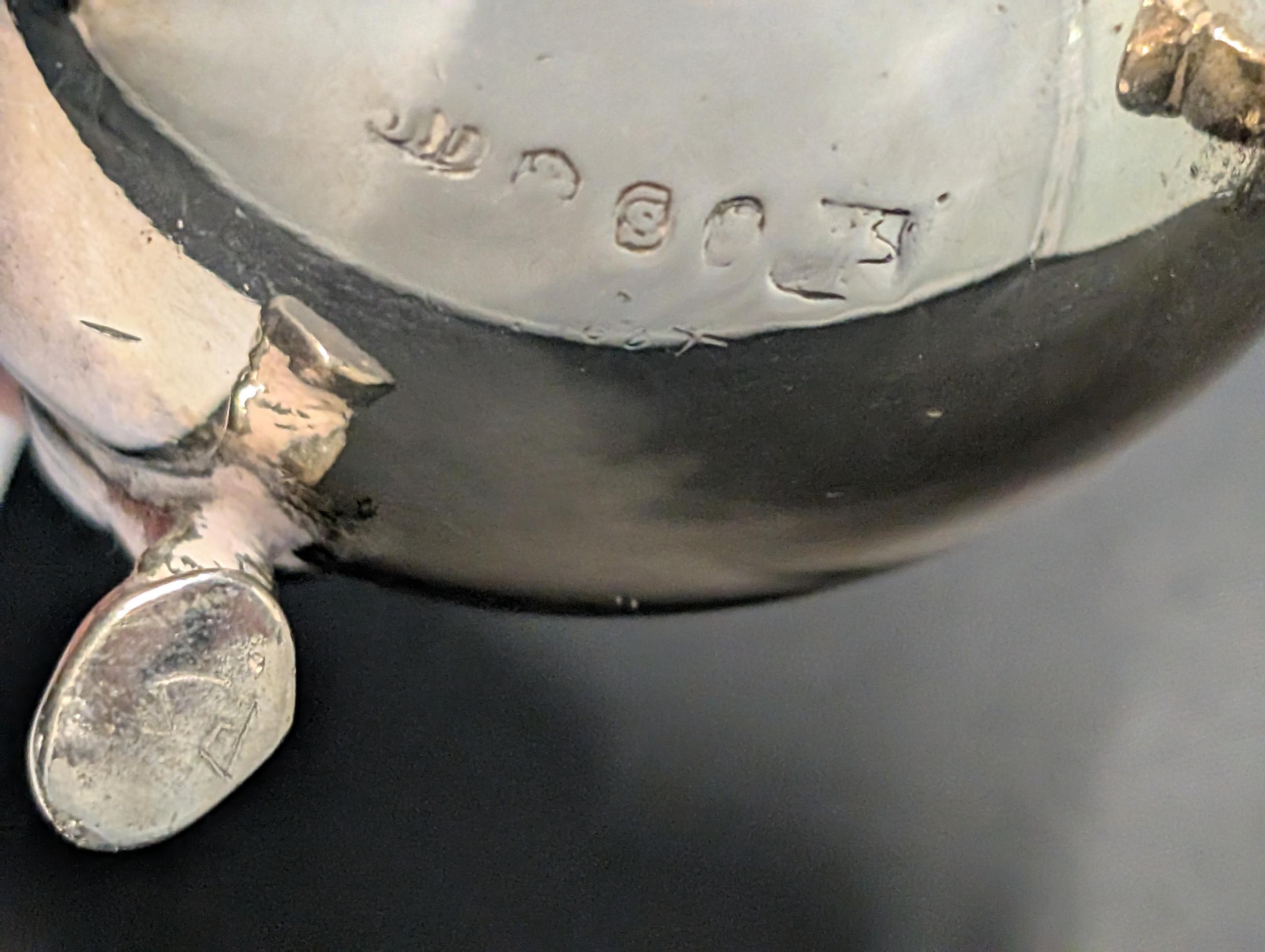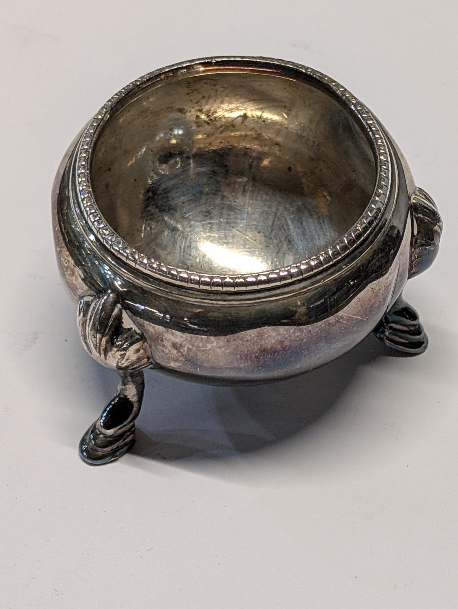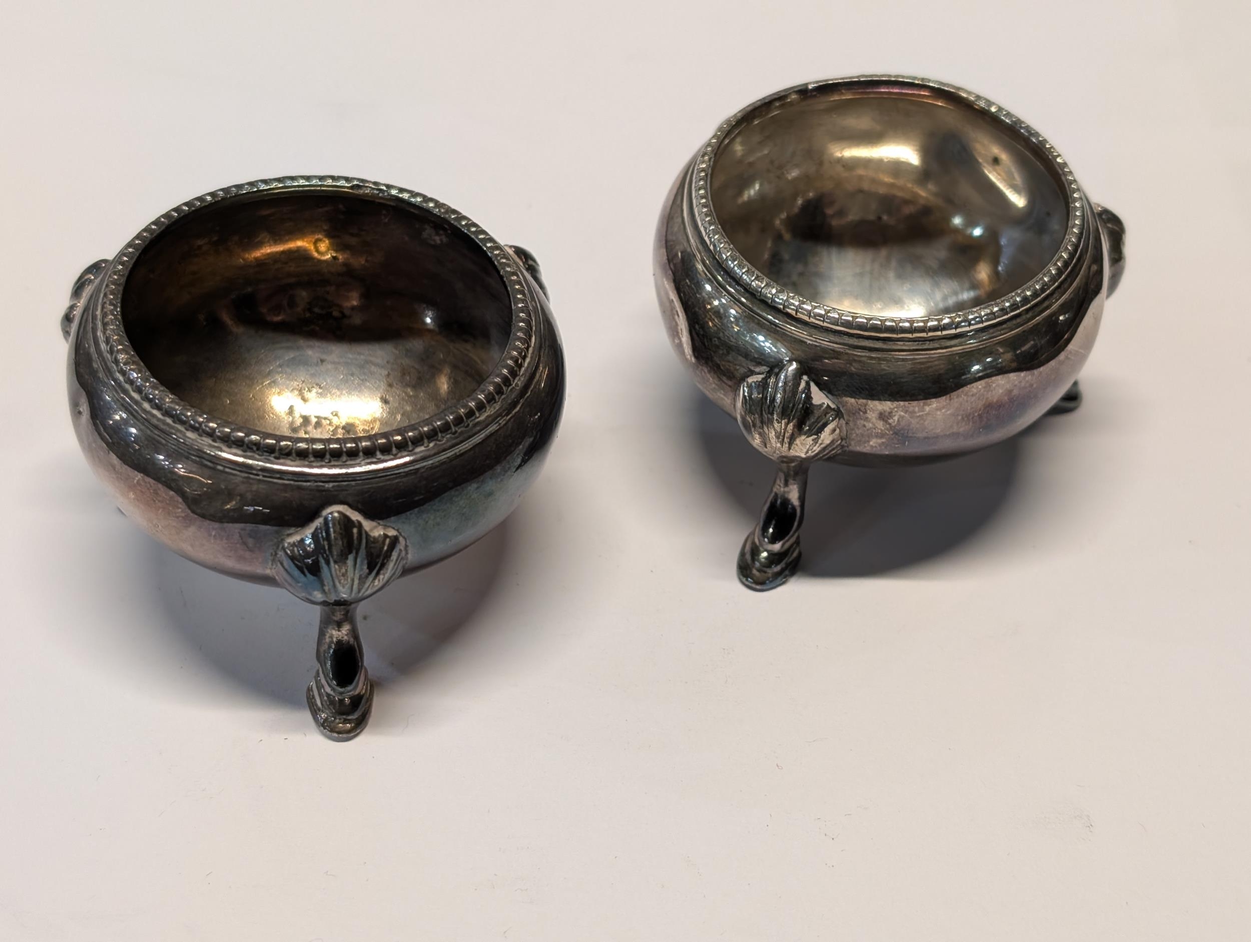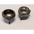 A Pair of English Sterling Silver Three-Footed Salt Cellars. Worn Hallmarks, H 4cm, 7cm dia 124g