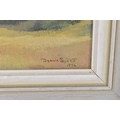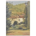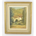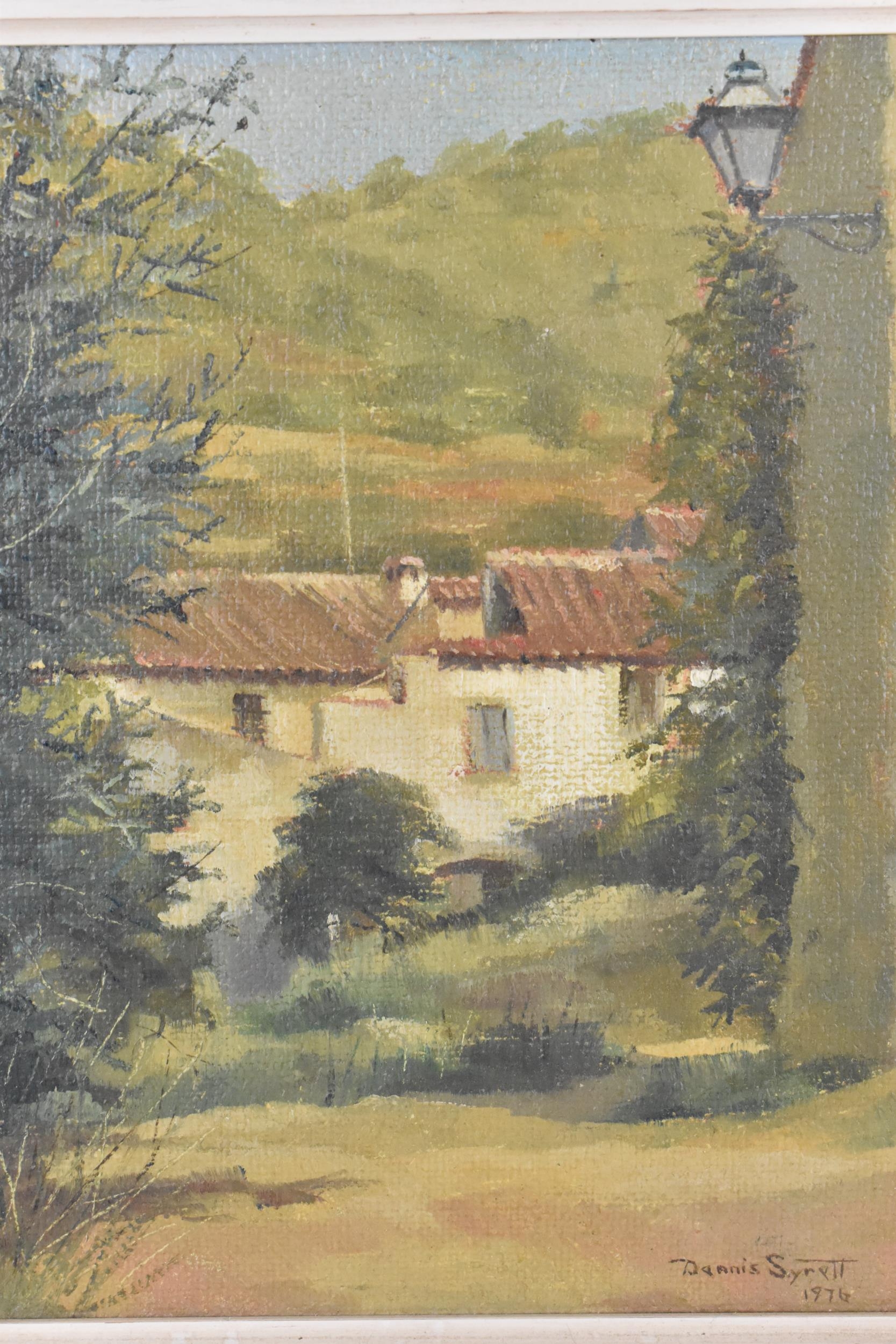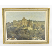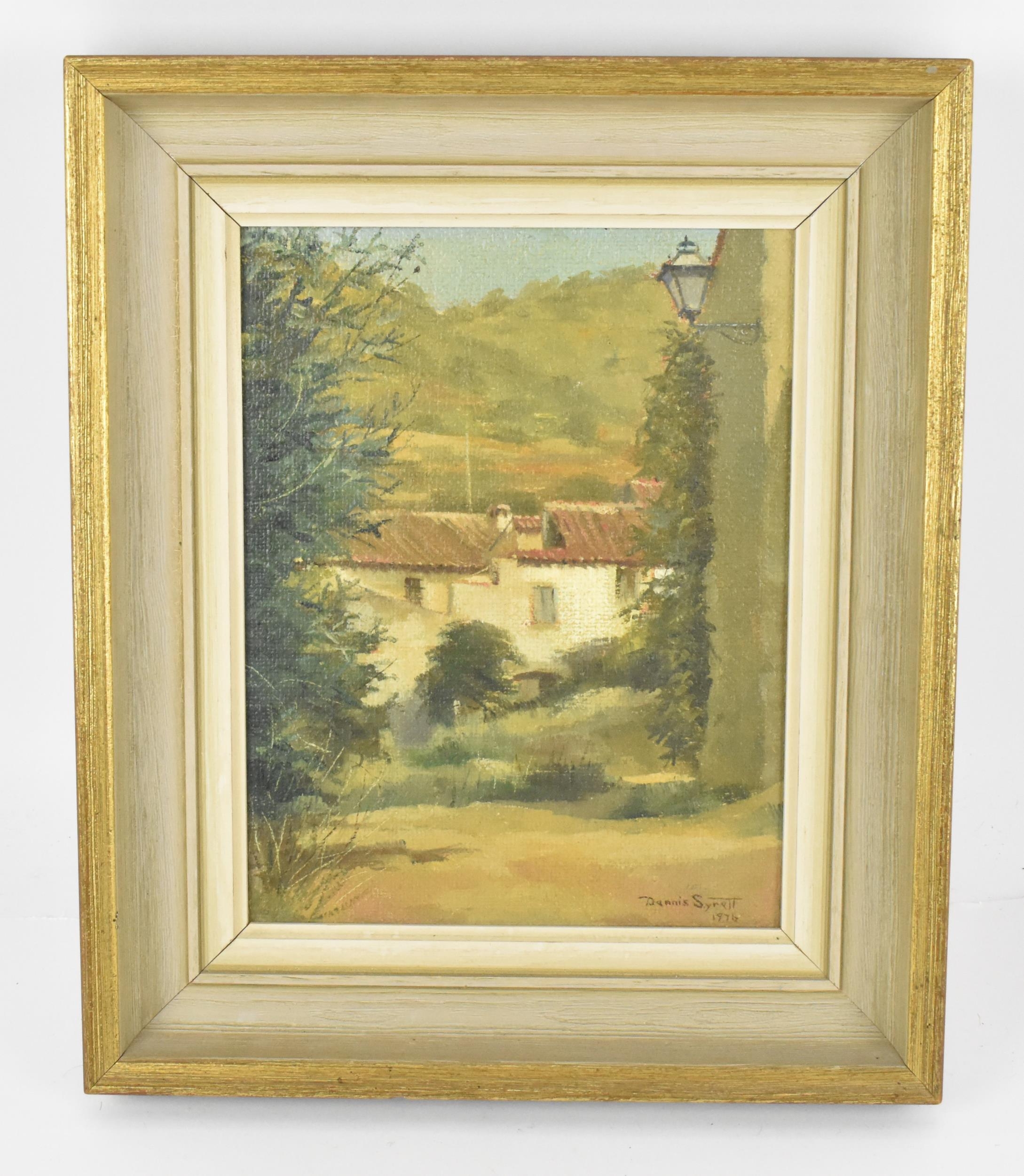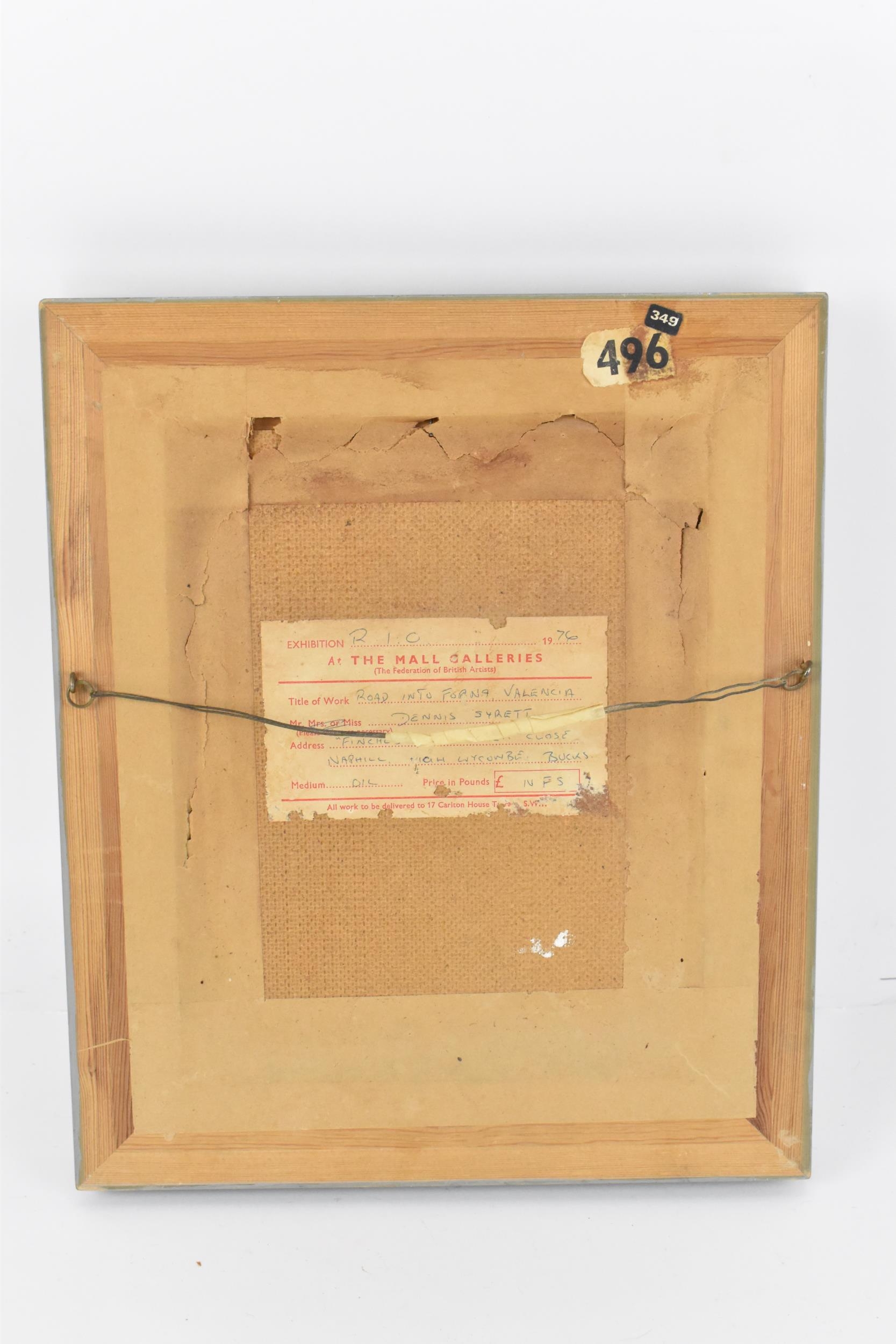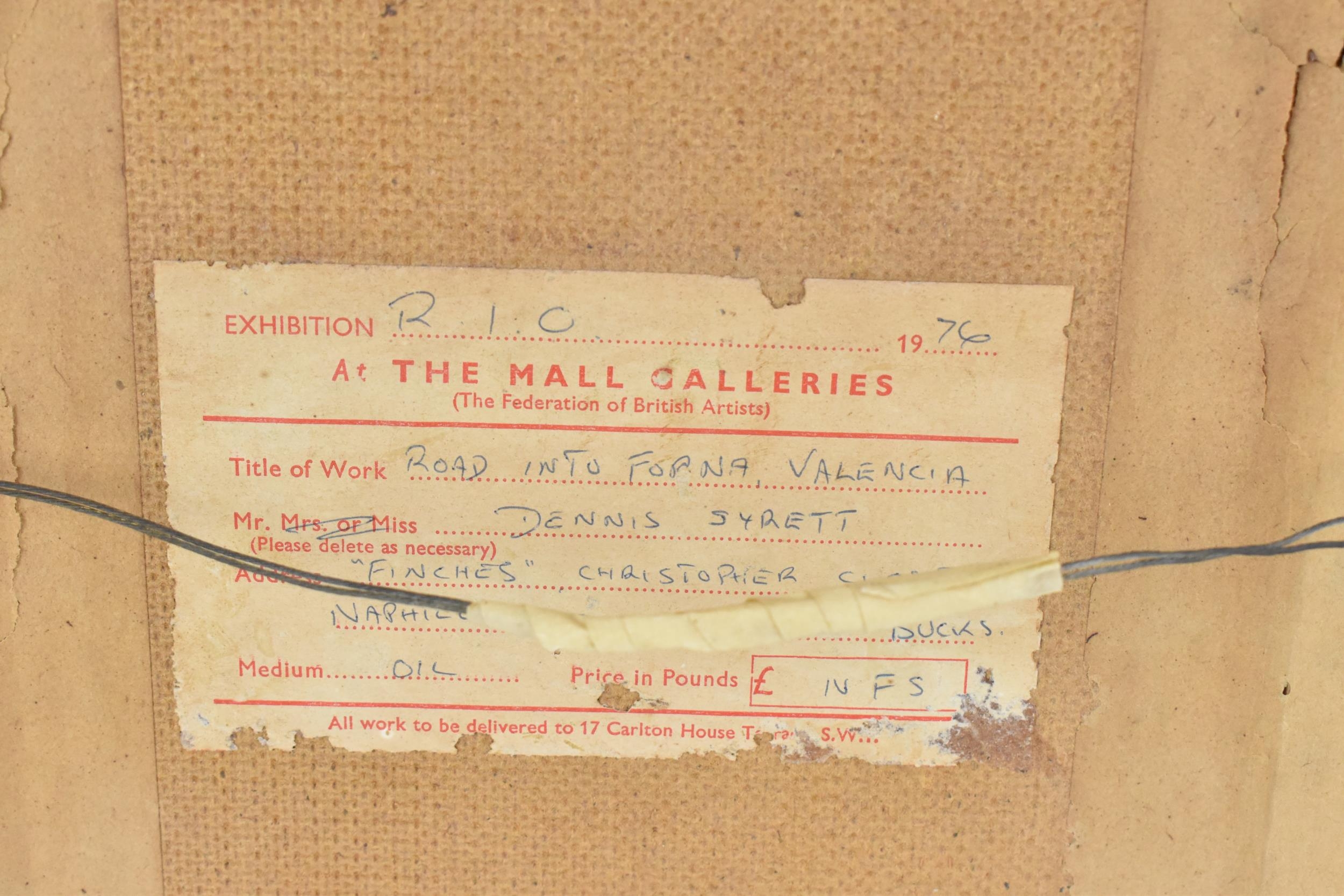 'Road into Forna, Valencia', oil on board, signed and dated 1976 lower right, 22 cm x 17 cm, within a painted and parcel gilt frame, the back with exhibition label