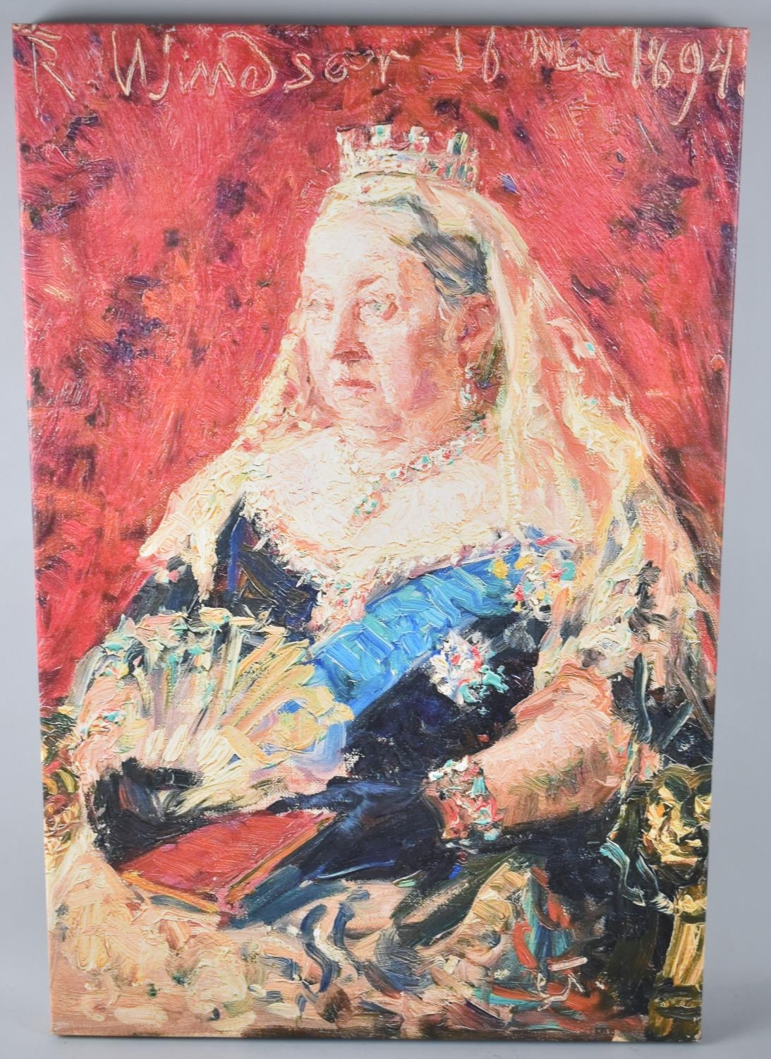 A Mounted but Unframed Coloured Print of Queen Victoria, 50x76cms