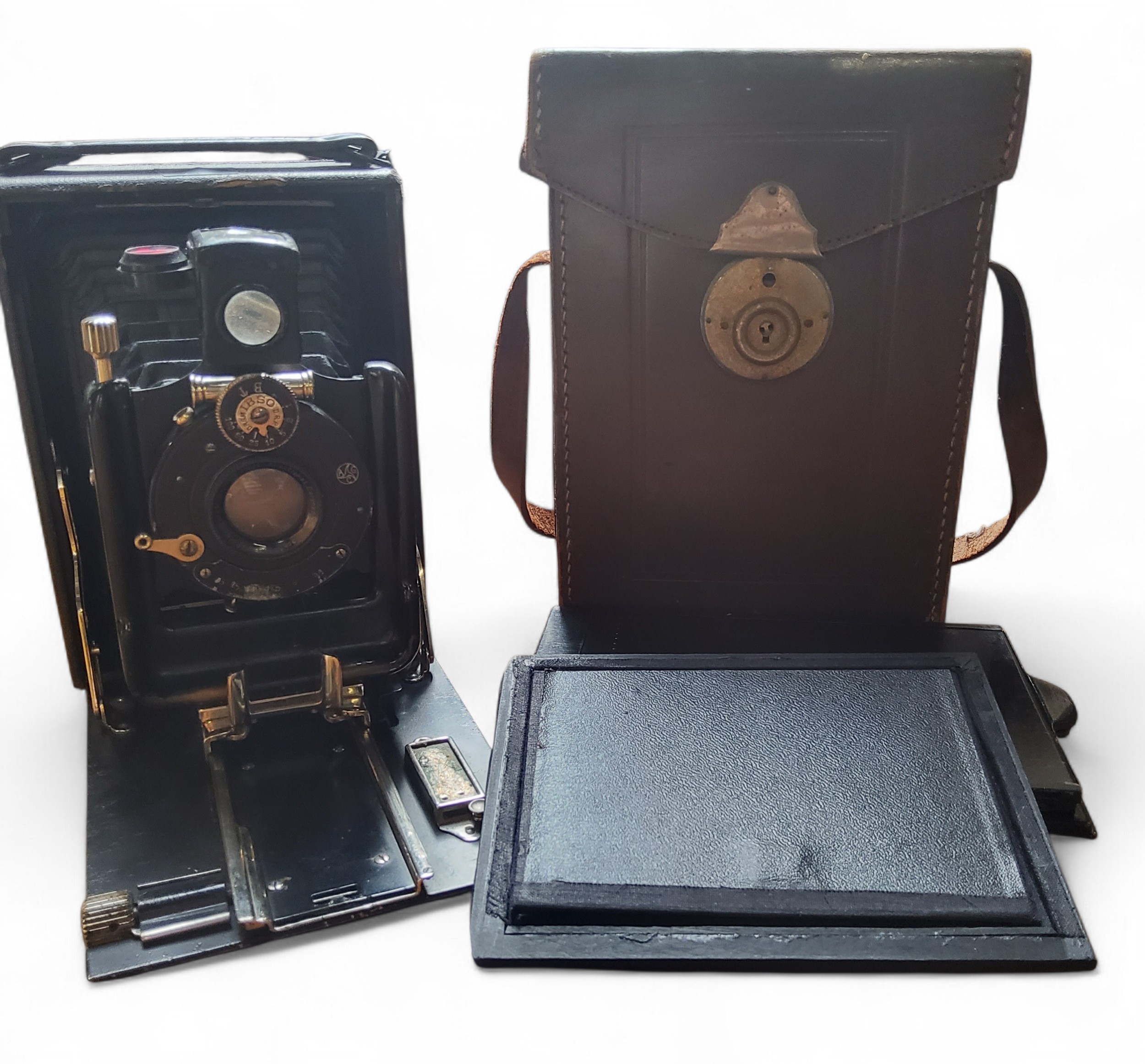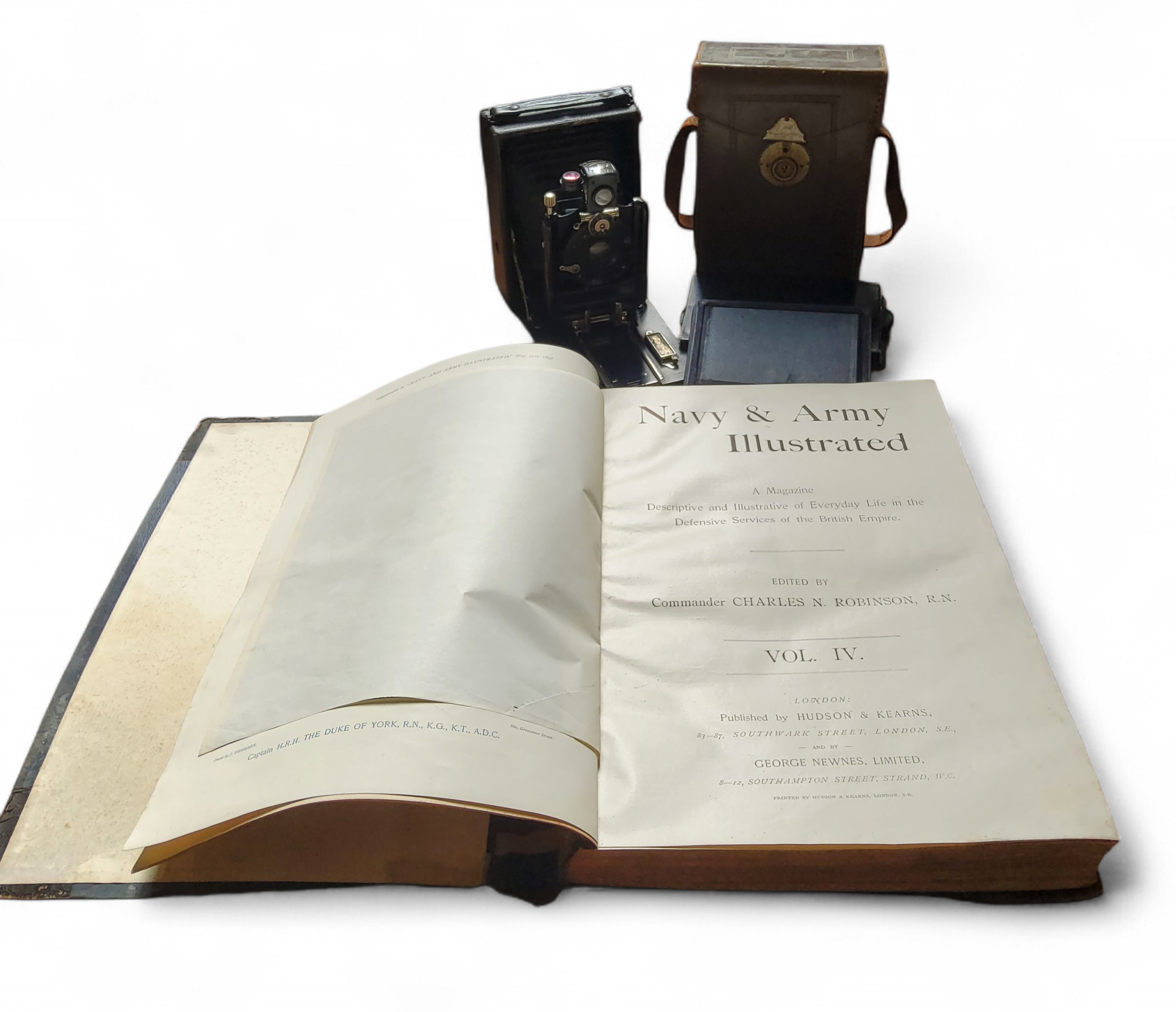 An early 20th century plate camera, IBSO lens, plates, cased; Navy & Army Illustrated, edited by Commander Charles N Robinson R.N. Vol IV (2)