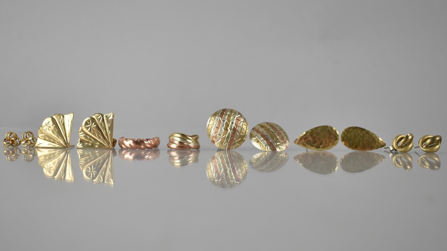 A Collection of Gold and Gold Coloured Metal to include 9ct Gold Knot Earrings, Italian Style Tri Coloured Circular and Hooped Examples Etc, Total Weight 6.2gms