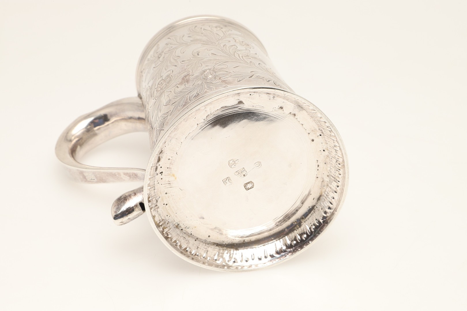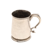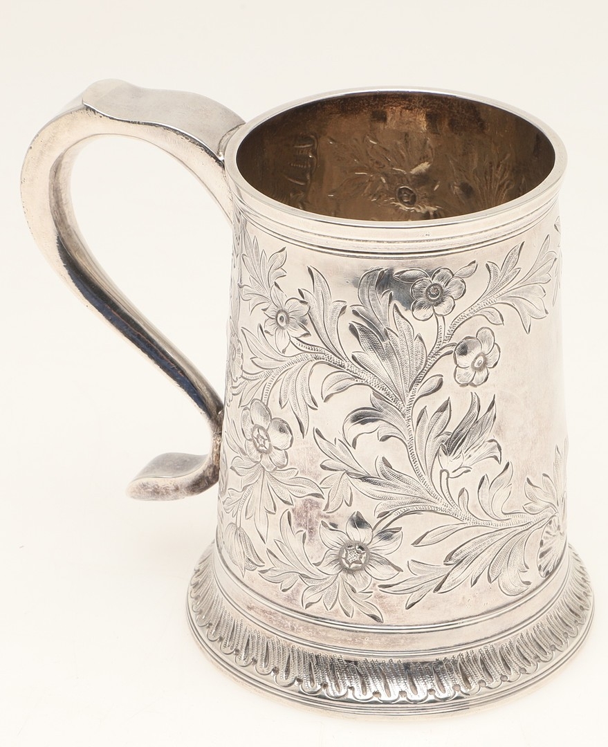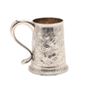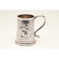 A GEORGE III SILVER MUG. With later chased foliate and flower head decoration, hallmarked John Langlands I & John Robertson I, Newcastle, 1780. Height 13cm x Diameter of base 10cm. Weight 10.7ozt.