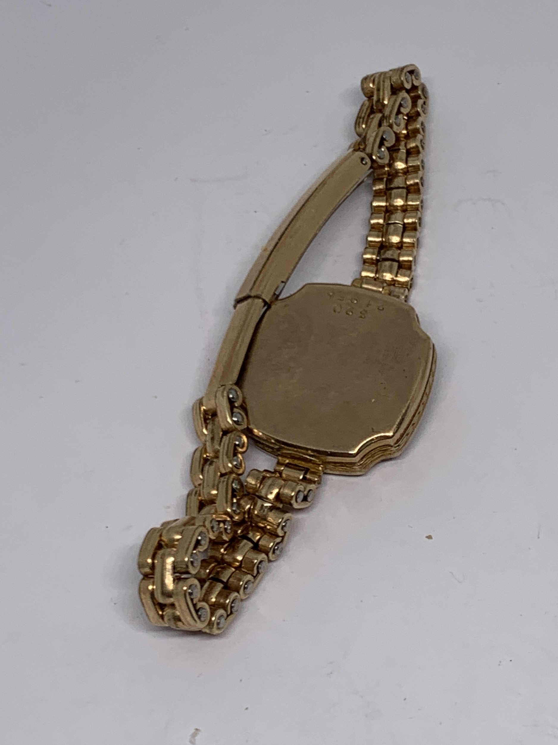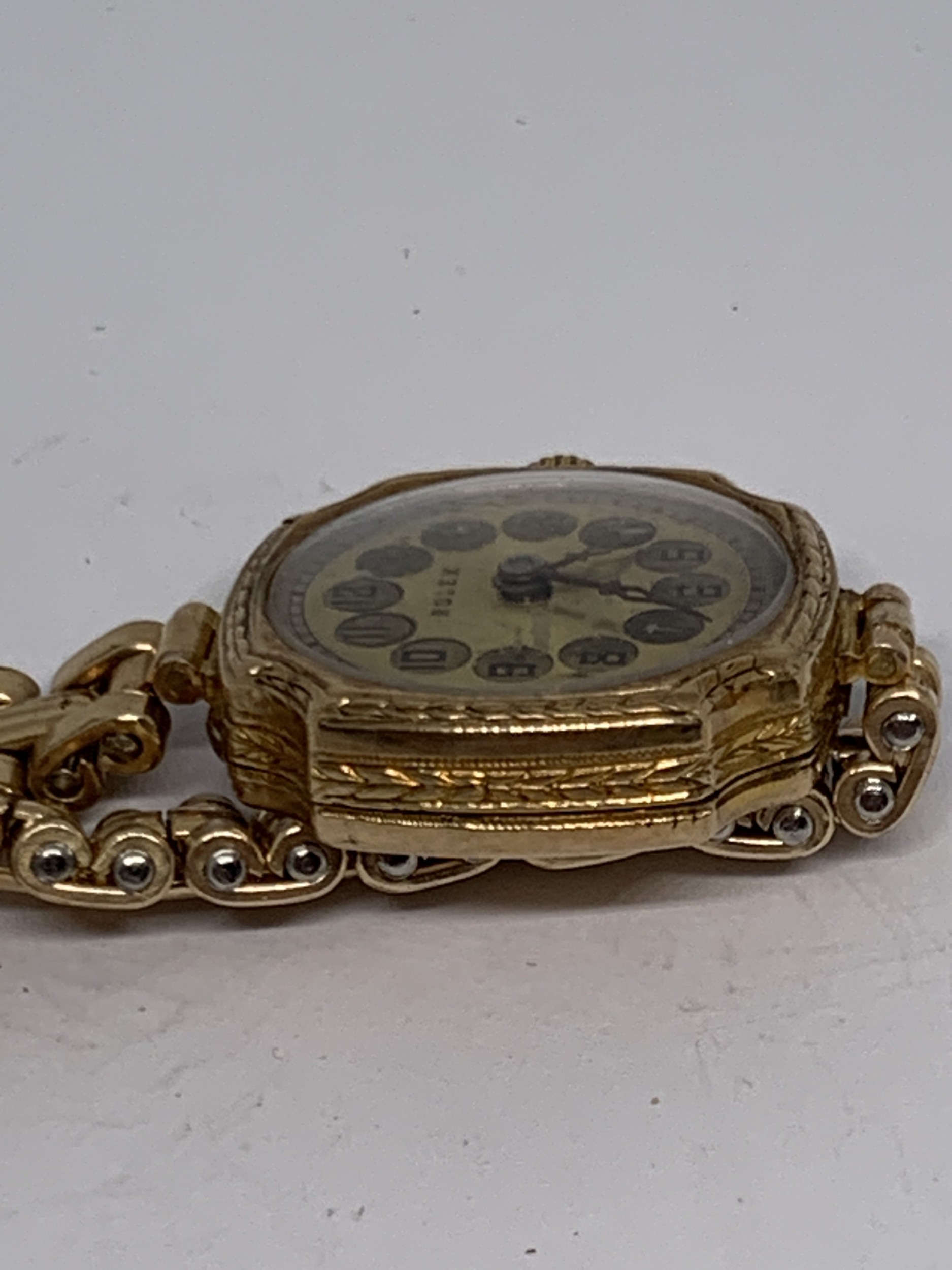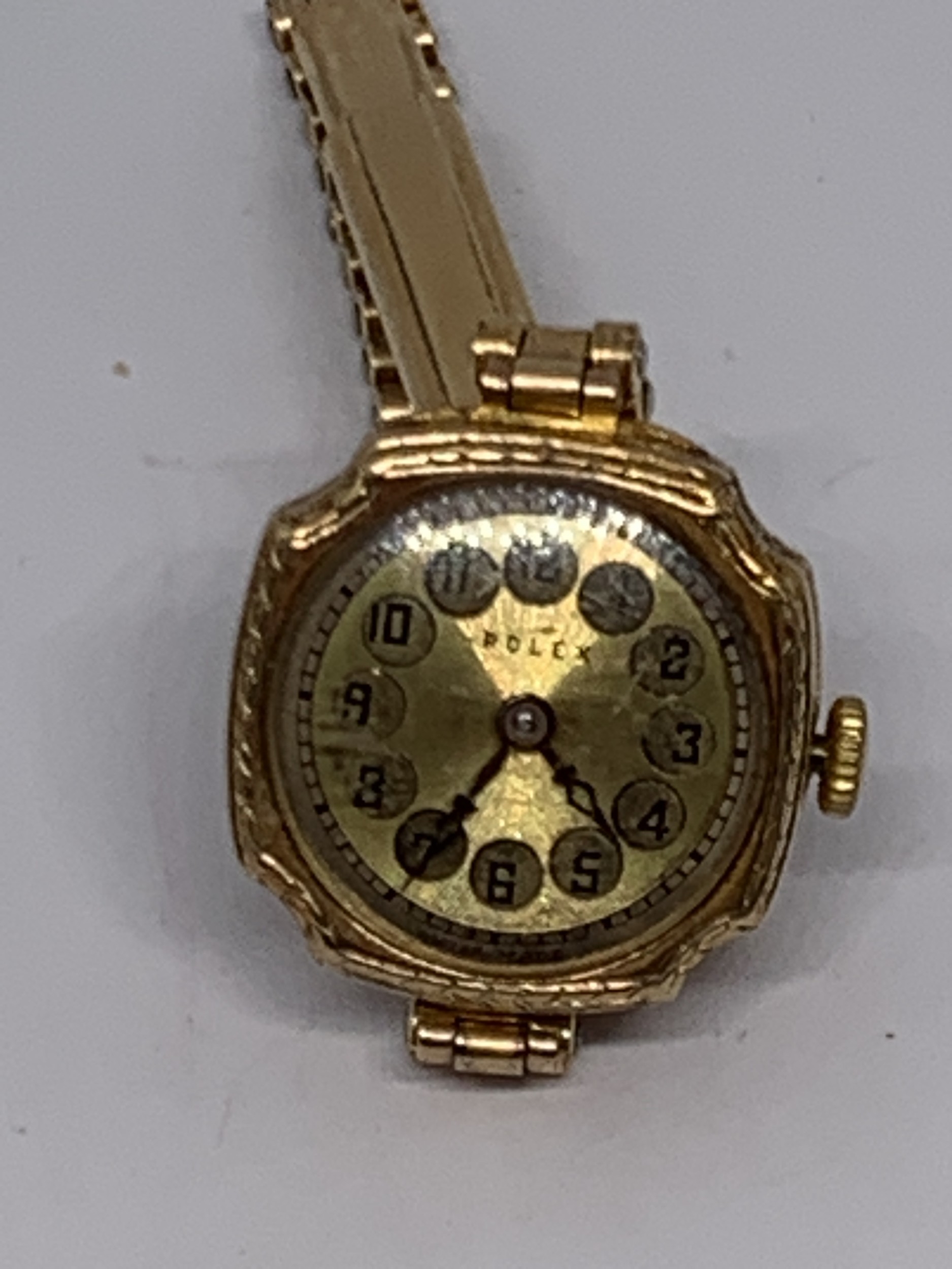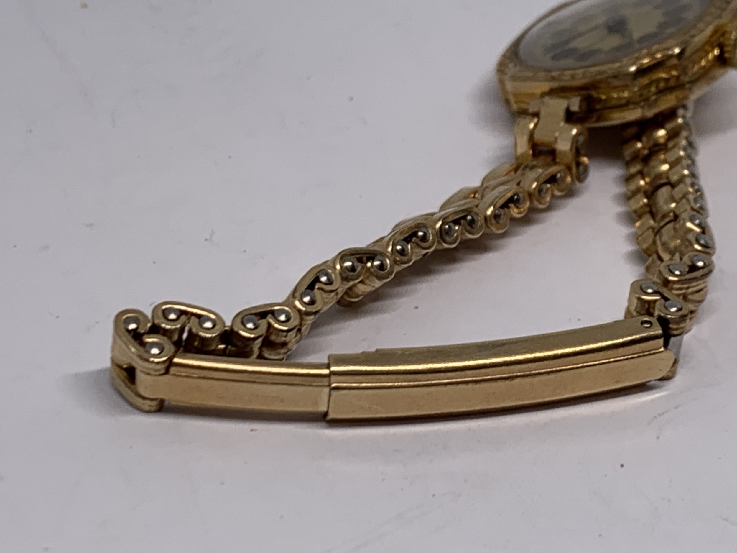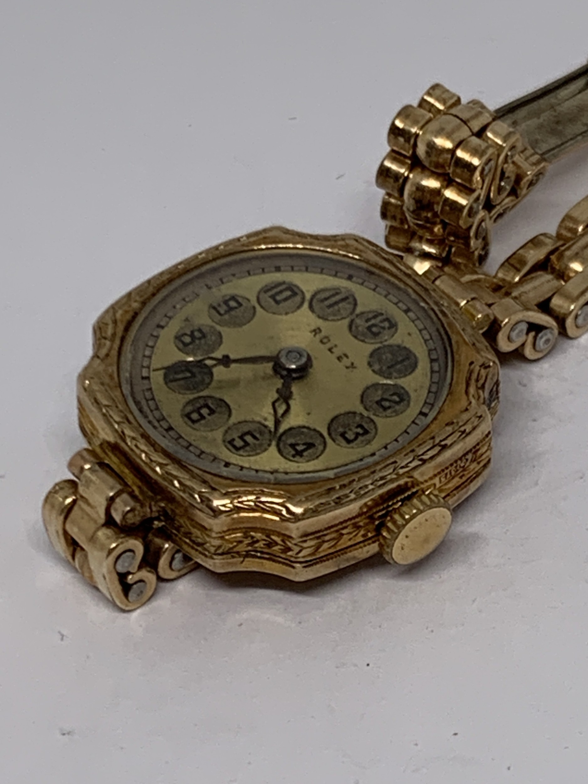 A 9 CARAT GOLD LADIES ROLEX WRIST WATCH WITH 9 CARAT GOLD PLATED STRAP GROSS WEIGHT 21.95 GRAMS