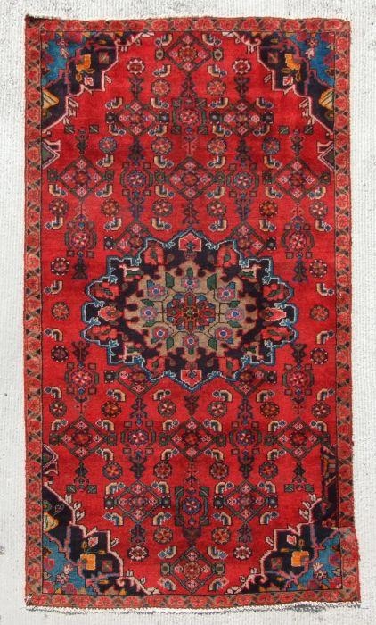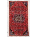 A Persian runner, the central floral decoration within stylised floral borders, on a red ground, 262 by 100cms (77).