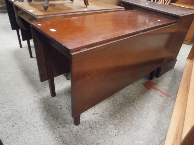 A very large antique drop leaf dining table with swing-out legs
