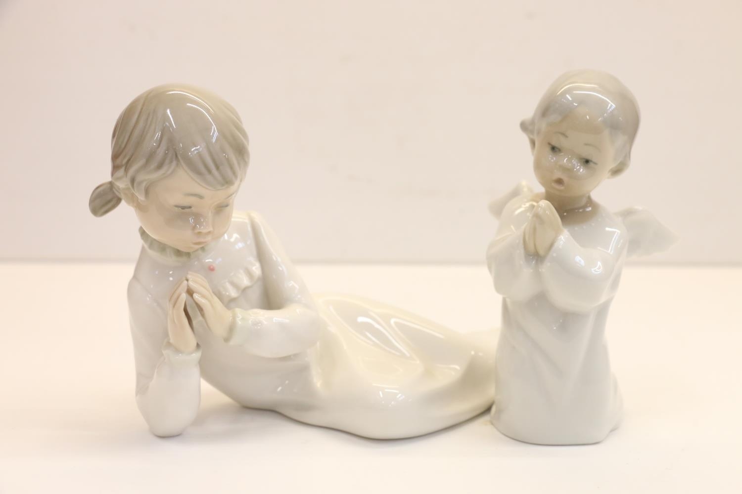 Lladro figure of a praying cherub 13cm, and a Nao model of a girl. (2)
