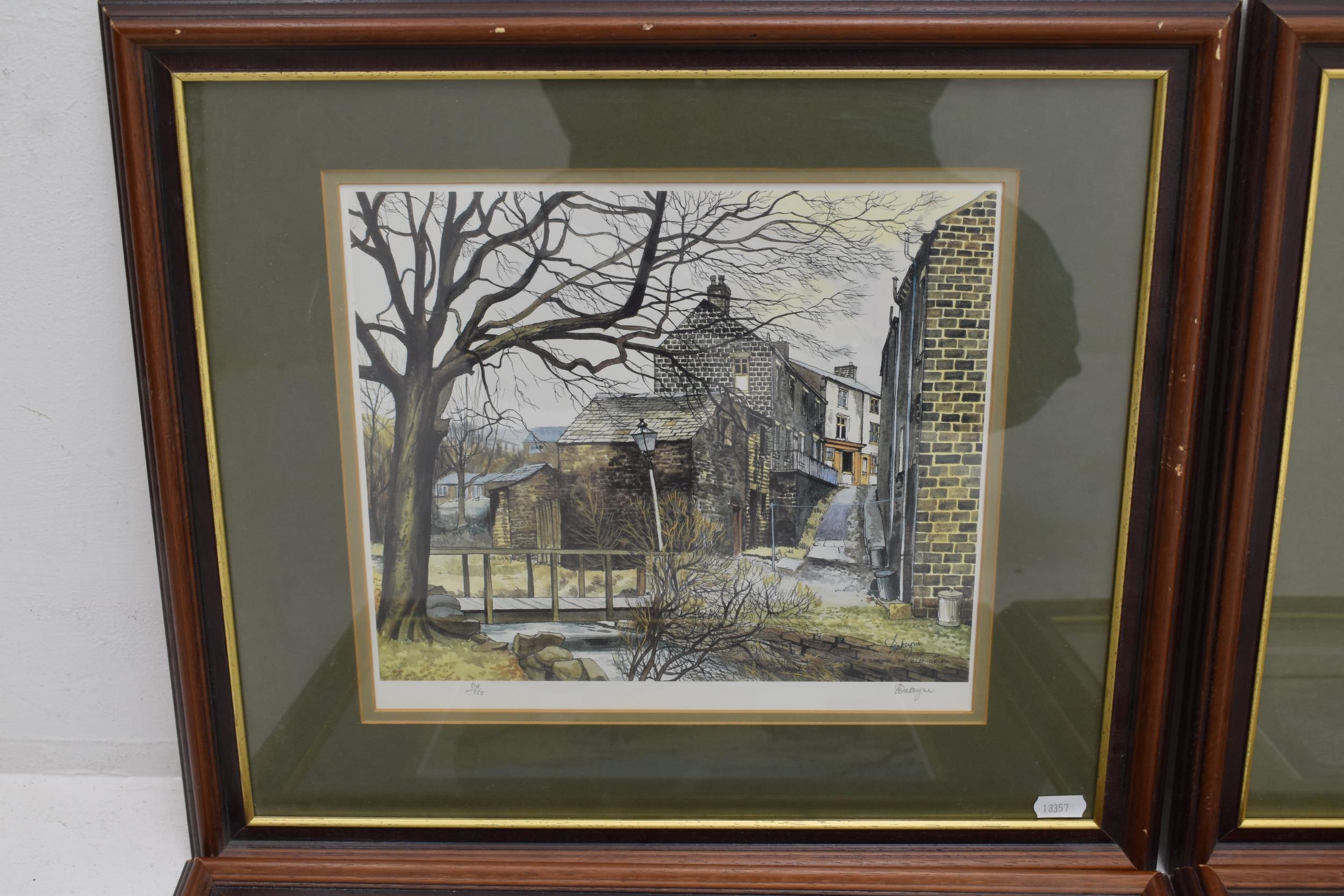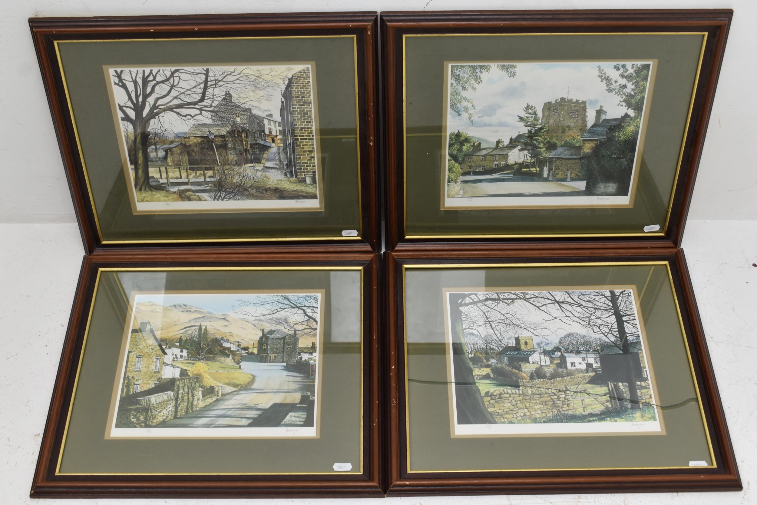 Four Don Dakayne Limited Edition Framed and Glazed Prints including Scenes From Whittington, A Corner of Old Delpg, Gisburn and Elterwater (19" x 17")